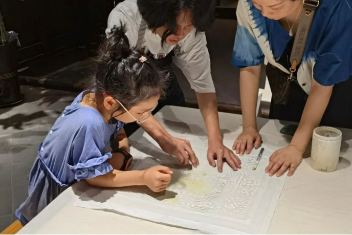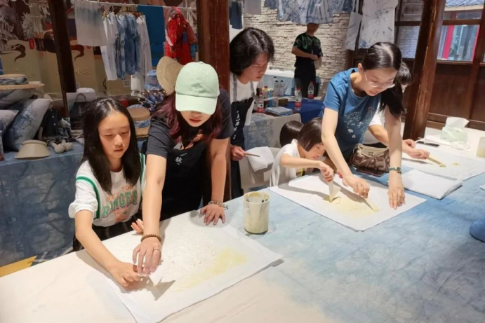 非遗是此次实践贯穿始终的主题,以“非”传统方式赓续和弘扬传统文化、诠释和展现非遗之美是队员们初心。温州的非遗文化琳琅满目,故而被称为“百工之乡”。实践队成员发挥艺术专业特长和审美优势,精准提炼出南戏、蓝夹缬、细纹刻纸等非遗文化中的时尚元素,和现代审美相结合,致力于形成一系列既符合时代品位、又兼具乡土情怀的非遗手作产品,如蓝染手作、瓯塑体验、南戏主题热转印等。