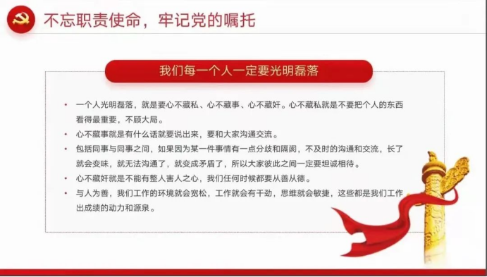 作为老员工党员,我们在学好专业知识的同时,更要坚定理想信念,增强党性修养,不断学习党的重要思想,坚定实现中华民族伟大复兴中国梦的信念。
