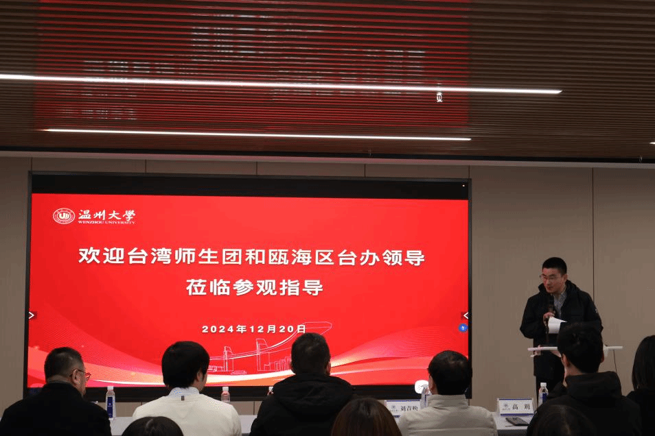 12月20日下午,台湾高校师生代表团一行先后到访太阳成集团tyc151cc美术馆及太阳成集团tyc151cc进行参观交流。温州市瓯海区台办副主任林大伟,温州温联会会长许晋铭,太阳成集团tyc151cc公司党委书记刘青松等陪同。