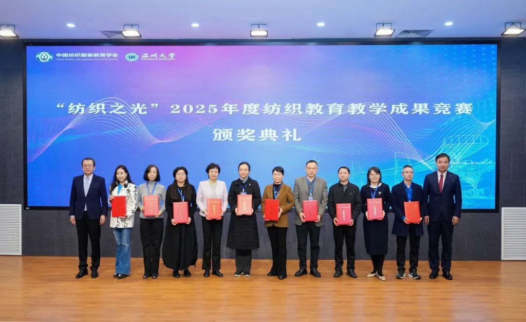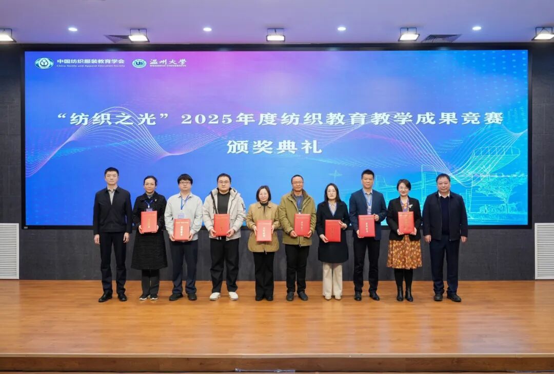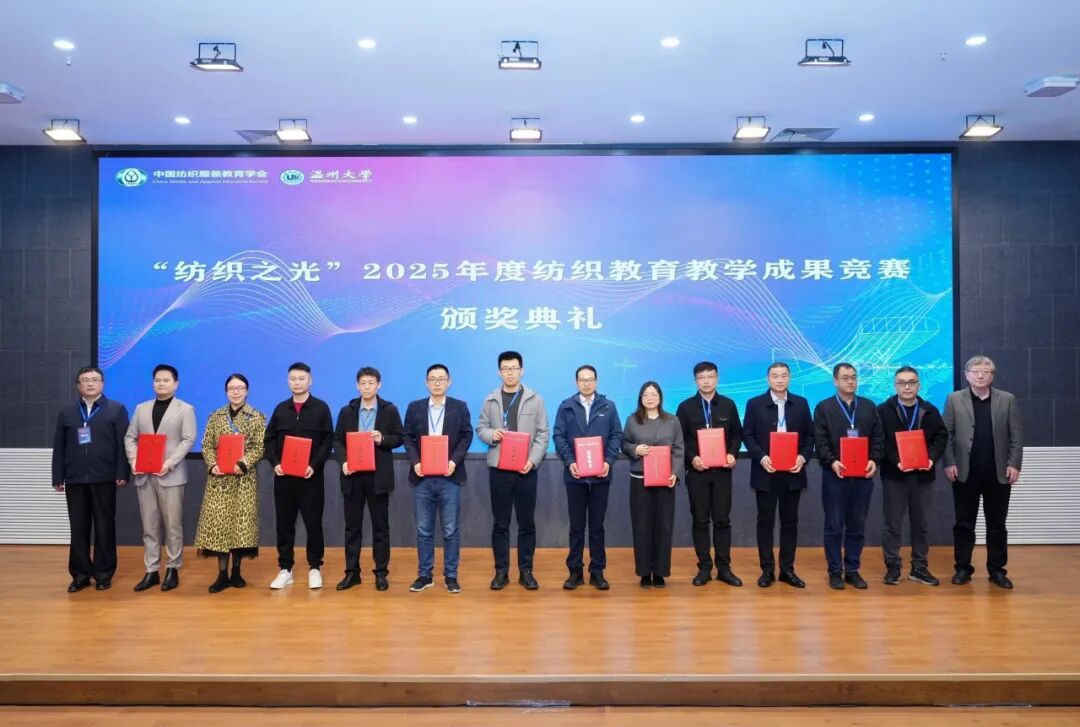 随后,大会举行了“纺织之光”2025 年度纺织公司产品成果竞赛颁奖典礼。该竞赛由纺织之光科技教育基金会资助,鼓励在教学改革、创新创业、人才培养等方面取得优秀成绩的教师。与会领导为获奖代表们颁发了获奖证书,现场气氛十分热烈。