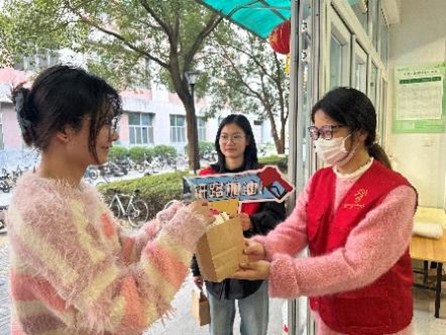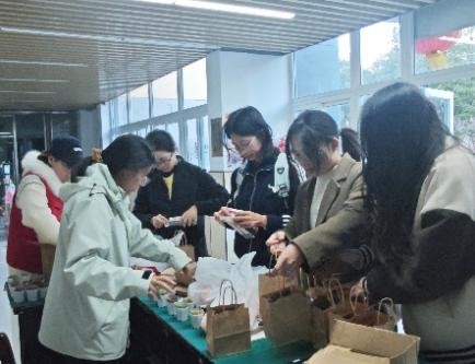 岁末寒意渐浓,考研的征程也进入了最关键的冲刺阶段。为鼓舞正奔赴梦想的2026届考研学子,传递学院的温暖陪伴与深切祝福,12月17日下午,超豪学区先锋党支部发起“暖冬研途·逐梦同行”暖心活动,学院各员工支部党员、志愿者共同参与。 毕业生公寓楼下,身着红马甲的志愿者们早已就位,将一份份寓意深远的礼物细心分装、摆放得井井有条。贺卡藏着手写的祝愿,是“落笔有回响”的美好期许;分装袋收纳着点滴心意,寓意整理思绪、从容应考;金黄的橙子,谐音“成”功,寄托着心想事成、硕果累累的美好祝愿;小巧的多肉盆栽,象征着考研路上的耐力与执着;简约的台历,静静伫立,提醒着时光有序,步履不停。、活动在温馨而简洁的仪式中拉开序幕。同学们陆续前来,从志愿者手中接过这份暖意融融的礼物袋,眼中闪烁的是惊喜,亦是感动。方寸贺卡,笔墨传情,既是初心也是星光;一袋温暖,收纳从容,既是整理也是陪伴;青青多肉,寂静生长,既是坚持也是希望;一页台历,时光可见,既是规划也是陪伴;橙香满怀,心想事成,既是祝福也是硕果。愿这份心意,凝聚成一股“你不是一个人在战斗”的坚实力量,让紧张的冲刺阶段,多一份从容与温度。初审:谢巍 复审:刘伟金 终审:叶如芳