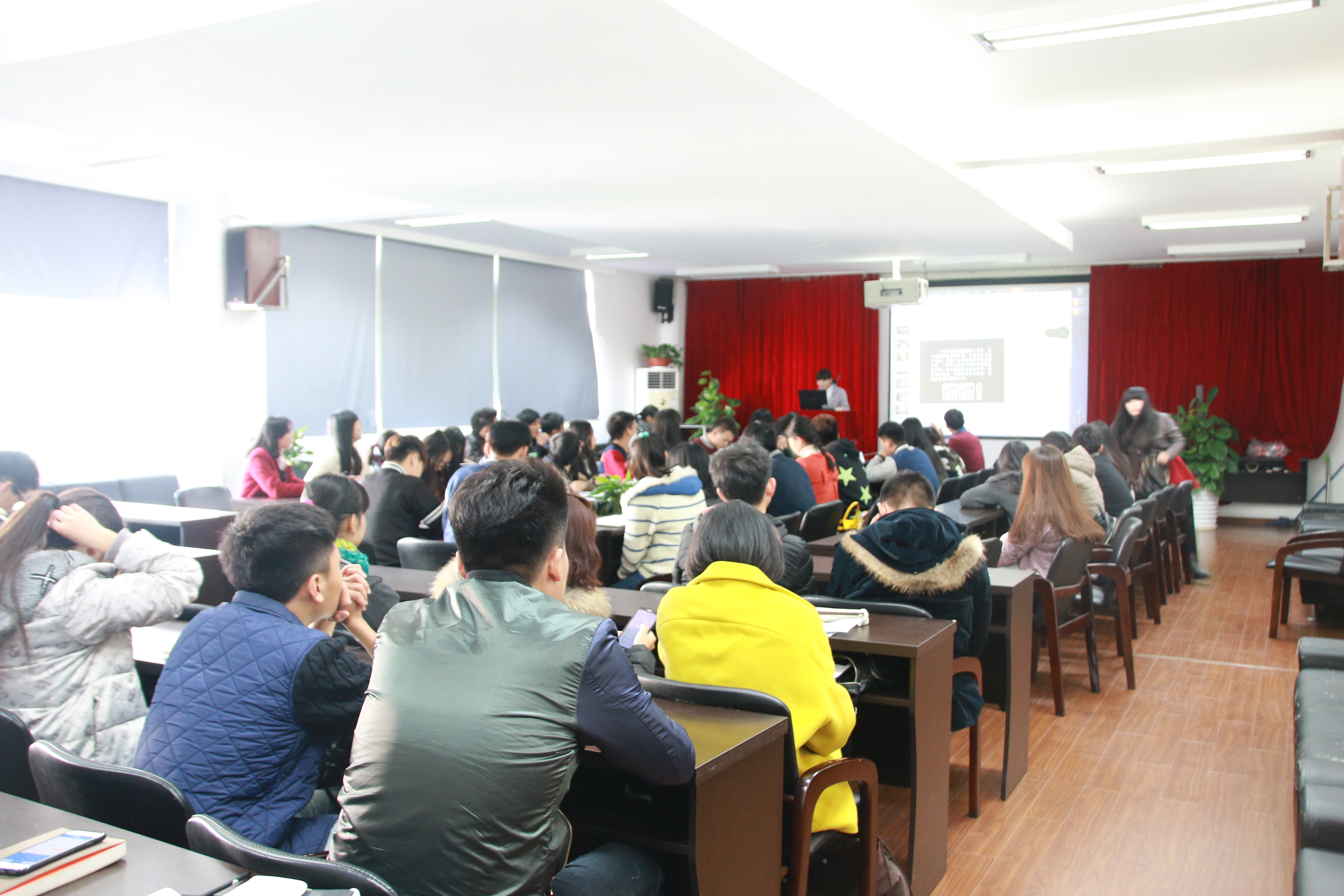 12月6日下午,公司团学第三次全体团学成员大会在美院2B4001如期举行。与会人员有公司员工科辅导员杜茜、团委副书记金李斌、员工会主席吴荣婷、员工会副主席叶佳颖、冯瑜瑜以及各部门部长与干事。 会议第一项议程是“每月之星”评选活动,每个参赛干事都饱含情感地展示了各自精心准备的ppt,在简短的发言中他们充分发挥,迎来了阵阵掌声,他们感慨工作,谈体会谈感想。有干事动情地讲到:“如果时光倒流,我还是会毫不犹豫地选择团学!”。 会议第二项是主席团和各部门部长做总结讲话。团委副书记金李斌说:“团学就像一只手,每个团学人就是手指,只有十指连心,才会力大无穷!”主席吴荣婷也从工作态度、配合程度、学习成绩等等方面细致讲解了优秀团学干部的考核制度。 各部长也互相分享了活动中遇到的问题、难题以及所取得的经验,并希望通过更好的方法进行改善。 最后,杜茜老师肯定了各部门开学以来所取得的众多成绩,也指出了当中需要改进的方面。她指出:“第一,好活动的宗旨是可以给在校同学提供展示自我的平台,充分发挥第二课堂的作用,既能调动参与者的热情,同时让举办者也会有成就感。第二,团学干部要有服务和奉献的意识,积极为全院师生提供帮助,同时也带动自身的学习。第三,团学内的每个人也要在集体中找到自己的定位,各部门之间要相互协作,增强团学凝聚力。” 附:第一期“每月之星”评选结果 创业就业部:王瑞 青协宣传部:张豪 办公室:王昱人、袁佳 素质拓展部:钱逸婷 (通讯员:杜晓旭,摄影:毛佳唯)