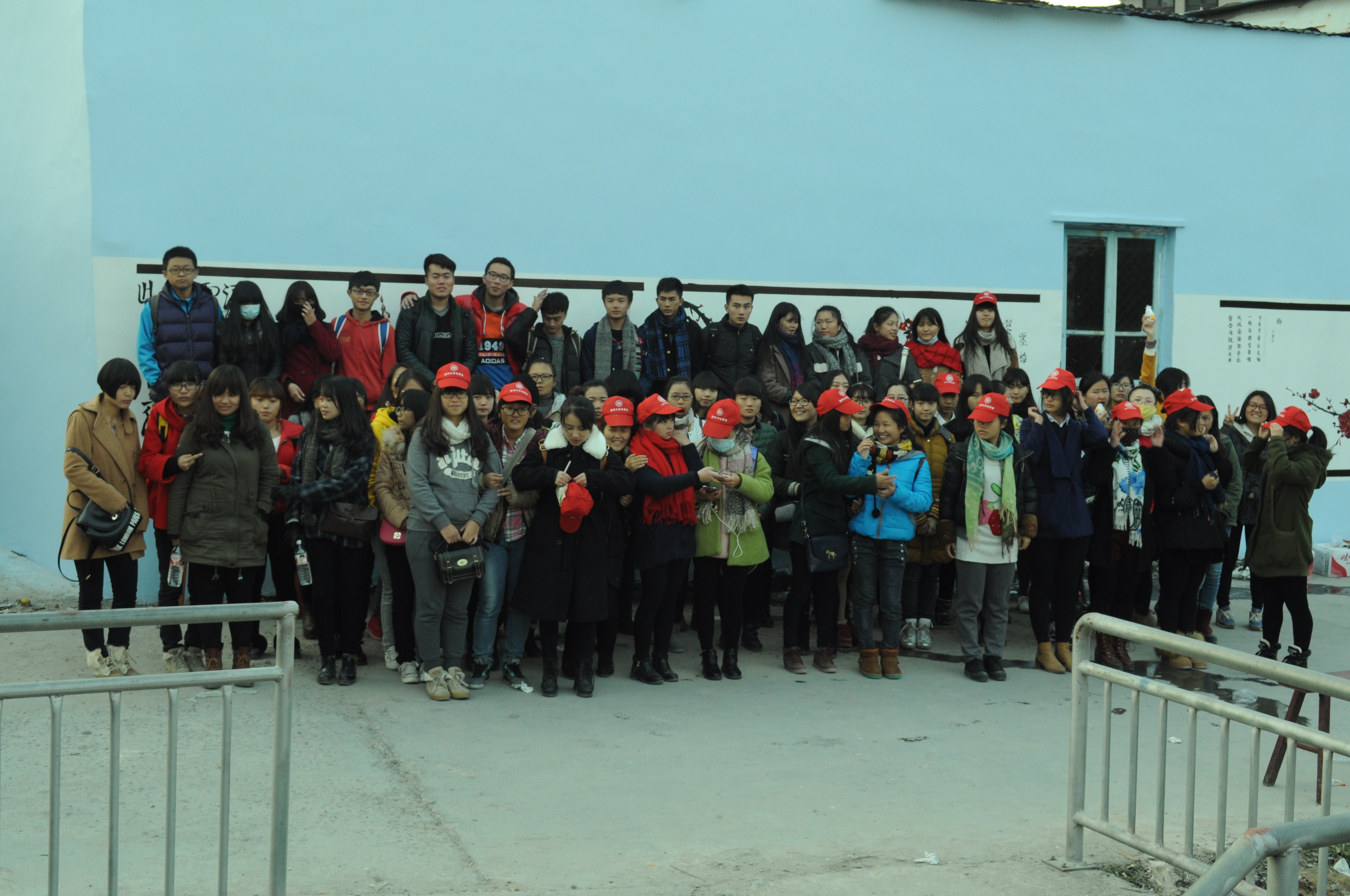 中午12点,志愿者在东边村村民热情款待下享用美味的午餐后,再次投身于上午未完成的画作中。在下午5时左右,600米的雪白的墙,在80余位志愿者的努力下终于穿上了美丽的新装。