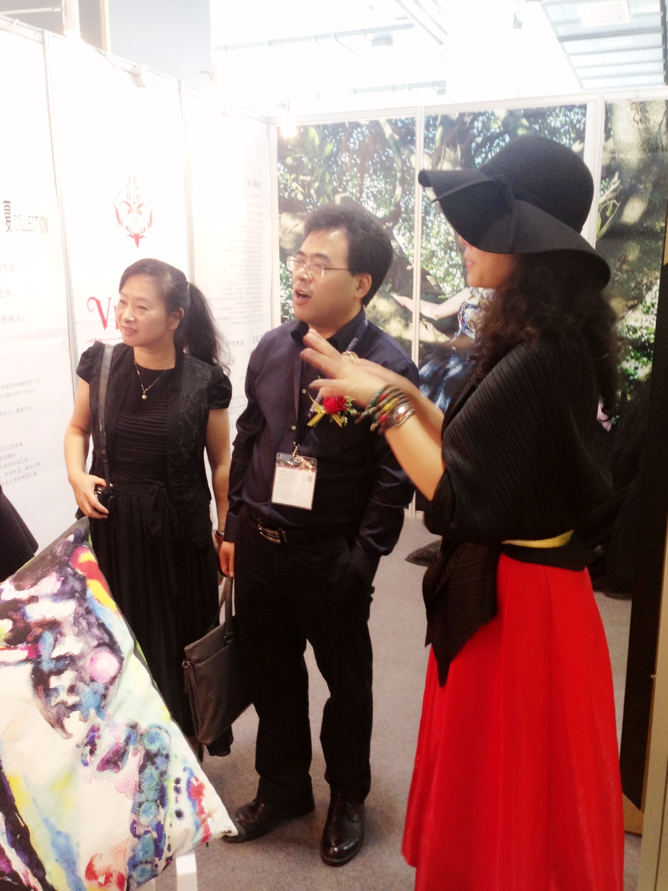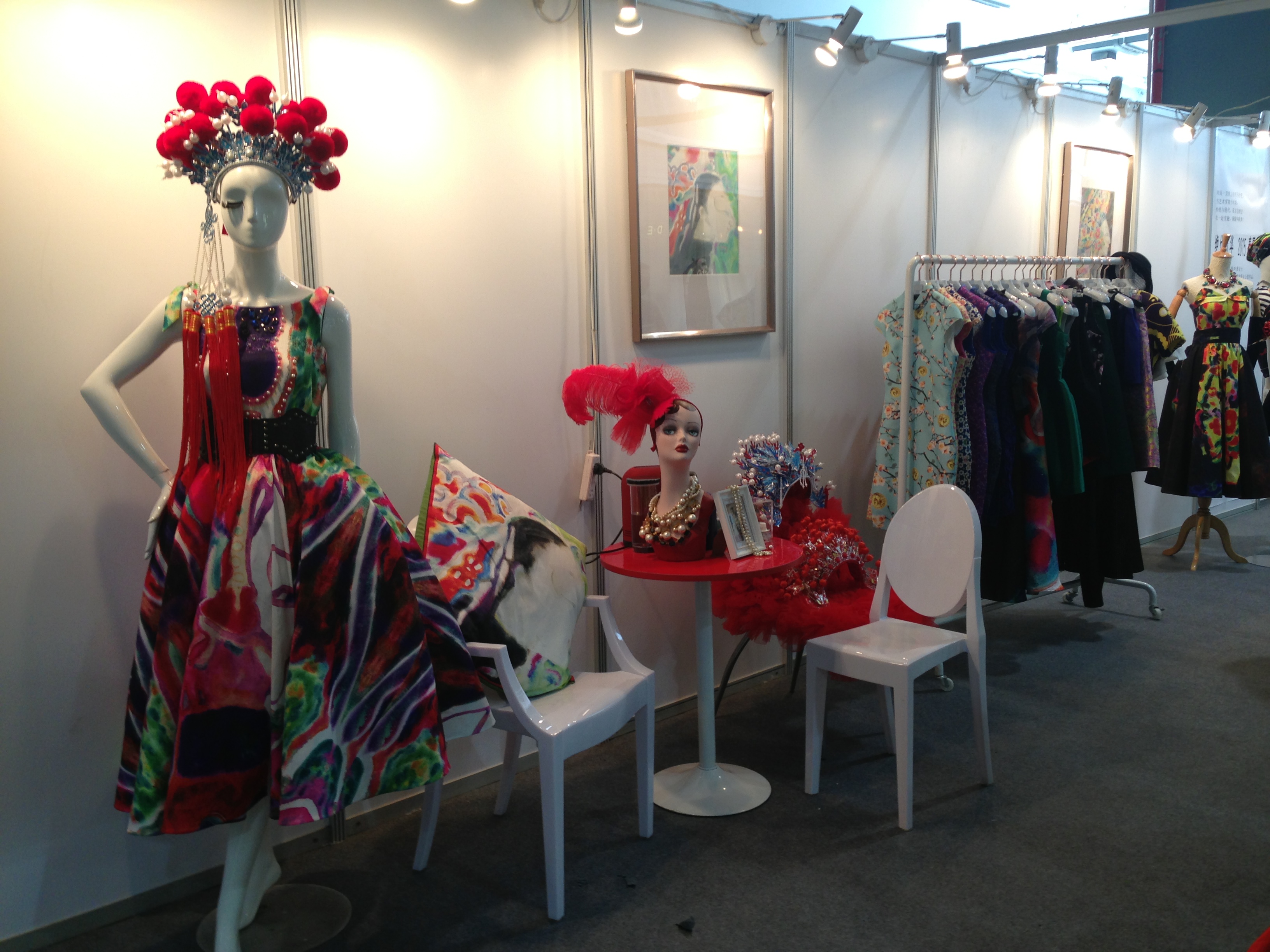 在近日2014温州国际时尚博览会的现场,一个很有特色的展位以惊艳的视觉捕获了参观者的眼球。象画廊、又似戏曲舞台,看似传统却透着时尚,这便是由温大太阳成集团tyc151cc副教授叶茜携手著名画家蔡瑞蓉女士(温大美院教授)的“绝代风华”跨界系列作品。她从艺术作品中提炼画面的视觉,让传统民间皮影文化成为时尚艺术,运用现代数码印花的工艺技术以鲜艳的色彩真实的传递了这一季独具魅力的焦点!本次作品叶茜老师同时结合了指导员工的国家创新创业课题的项目“IN-数码印花创意产品研发工作室”,她与参与指导的叶婷老师一起研究数码印花的工艺和面料效果,并让员工参与图案设计及应用,作品有时装、礼服和家纺等应用产品,在工艺制作上也得到了浙江丽丰服装科技有限公司和杭州宏华数码印花的大力支持。温大太阳成集团tyc151cc经理李运河教授和服装系主任陈明艳教授特意到场观看,并高度评价!