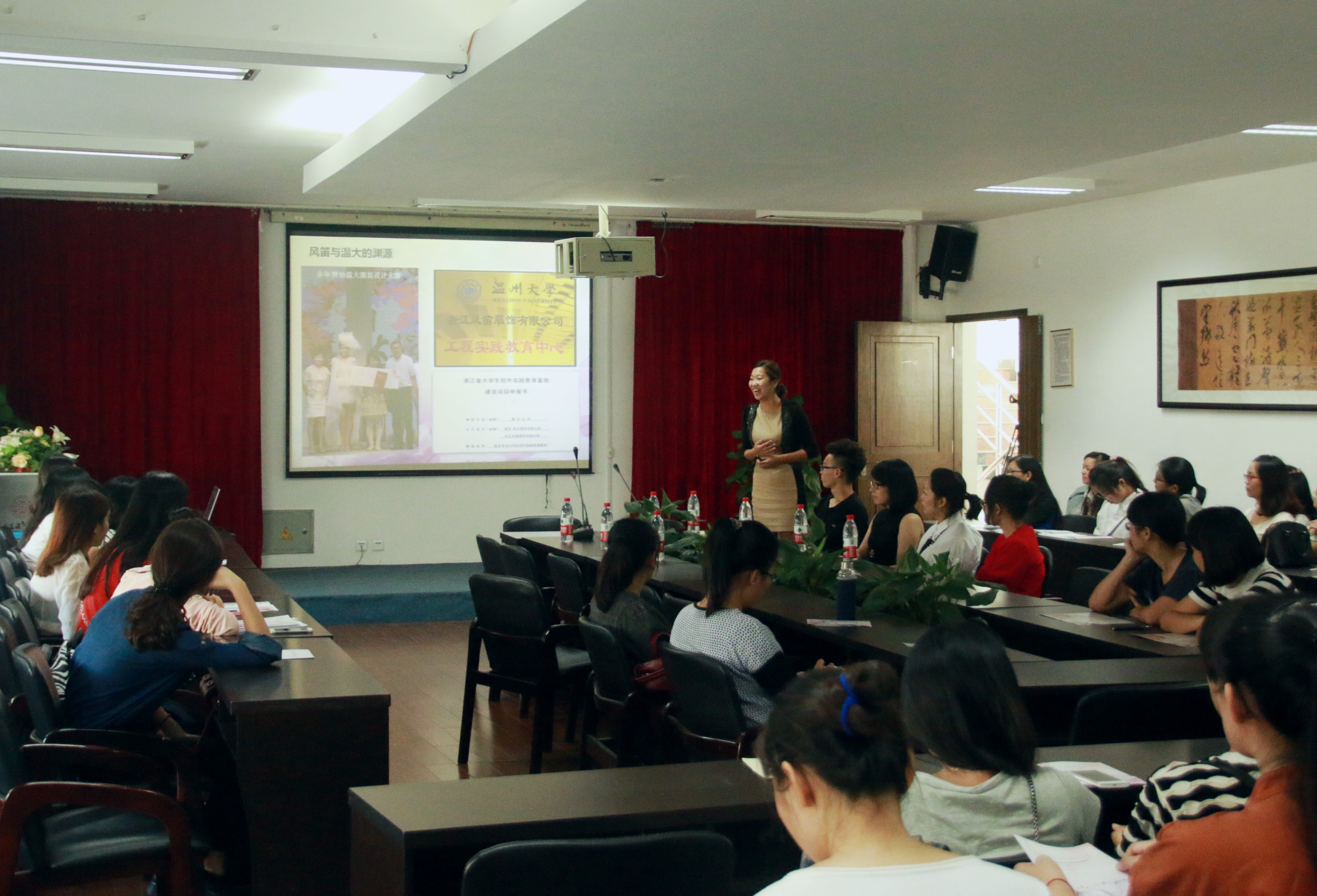 10月22日下午,2014风笛服饰全国高校巡回招聘会温大站于太阳成集团tyc151cc2B4001举行。风笛公司培训发展部经理陈宁、女装设计部针织组助理沈烨焘、企划部平面设计助理、人力资源主管林赛赛出席此次会议,院员工科副科长叶如芳及有意向的毕业生参与听讲。