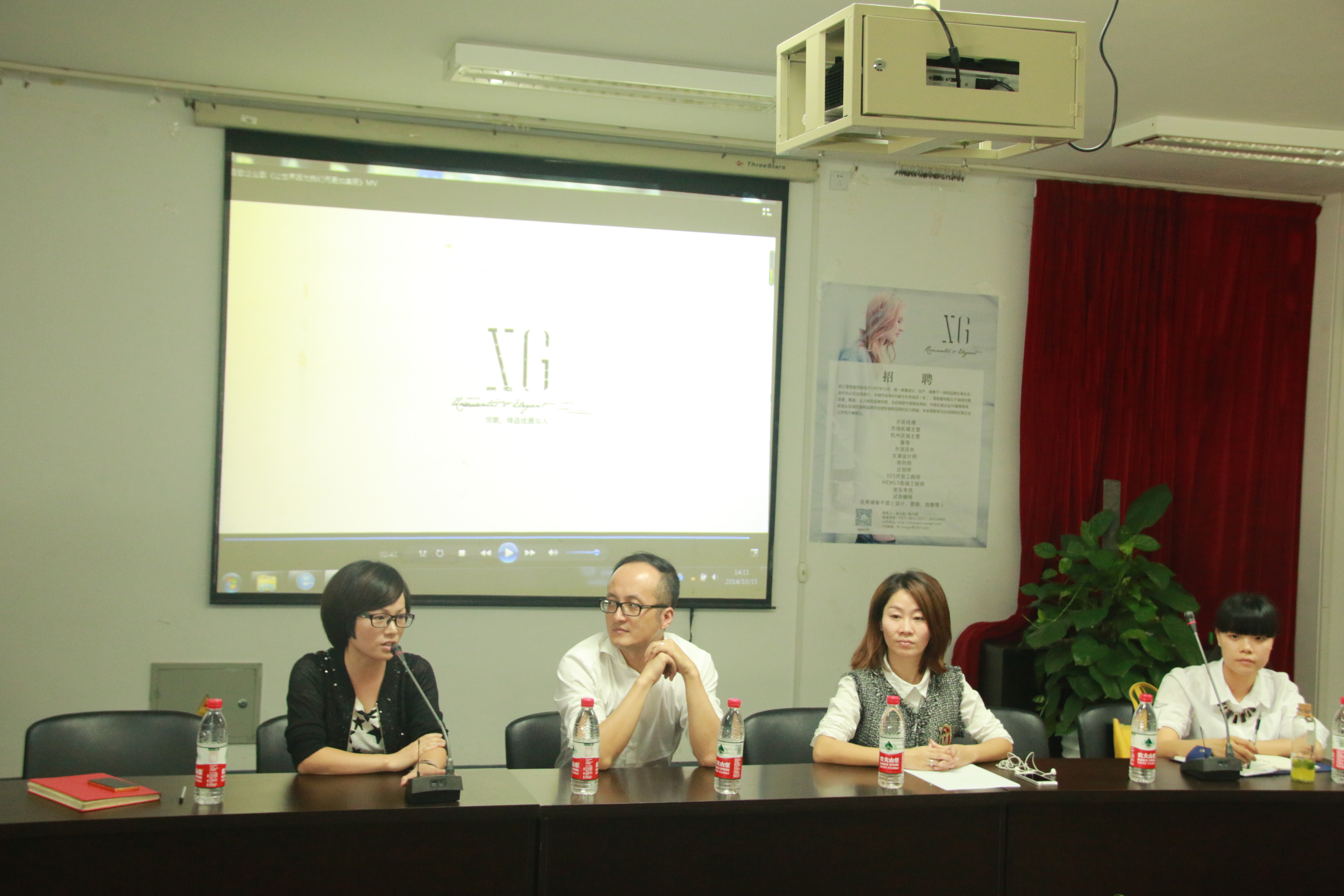 10月15日下午2点,雪歌服饰有限公司招聘宣讲会于2B4001举行。参加此次会议的有雪歌服饰有限公司总经理康峰、雪歌服饰有限公司人事部经理木小春、公司员工科副科长叶如芳以及11级服装专业的所有同学。这是一次和企业面对面直接交流的机会,毕业班的同学们都非常珍惜这个机会并积极参加。