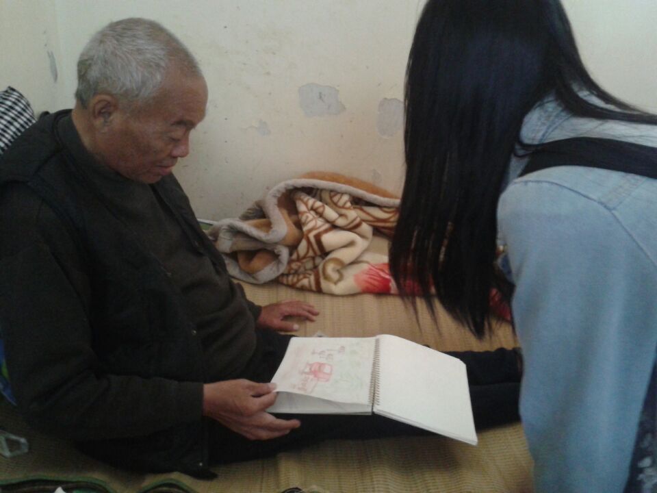 4月27日,美院“艺家人”青年志愿者协会在杨府山敬老院举办了“故事绘——听您讲过去的故事,为您画流逝的时间”的活动。 早上8点,参加此次活动的负责人、志愿者和校瓯语社成员在E区门口准时集合,经过一个半小时左右的路程, 志愿者们终于来到了杨府山敬老院。在敬老院负责人的指引下,一行17人来到了三楼汤德新老先生的房间。汤爷爷因为车祸卧床二十年,他对志愿者们的到来感到十分惊喜。他向大家聊起了自己年轻时候的经历,虽然很多的情节片段已然模糊,但从老人的言谈笑语中,大家还是能感受到那份发自内心的自豪和满足。 志愿者们将汤爷爷的故事进行整理并绘制成了18幅图,当大家把装订成册的“故事绘本”送给汤爷爷时,他颤抖着双手仔细翻看,不禁潸然泪下,这一幕感动了敬老院所有的工作人员。 公司员工从美术专业实际出发,本着关爱老人和感恩社会的活动理念,用手中的画笔跟随老人一同回忆其走过的年华岁月,相信这本注入爱心的精美“故事绘”定能为老人的记忆添上一笔绚丽的色彩。
