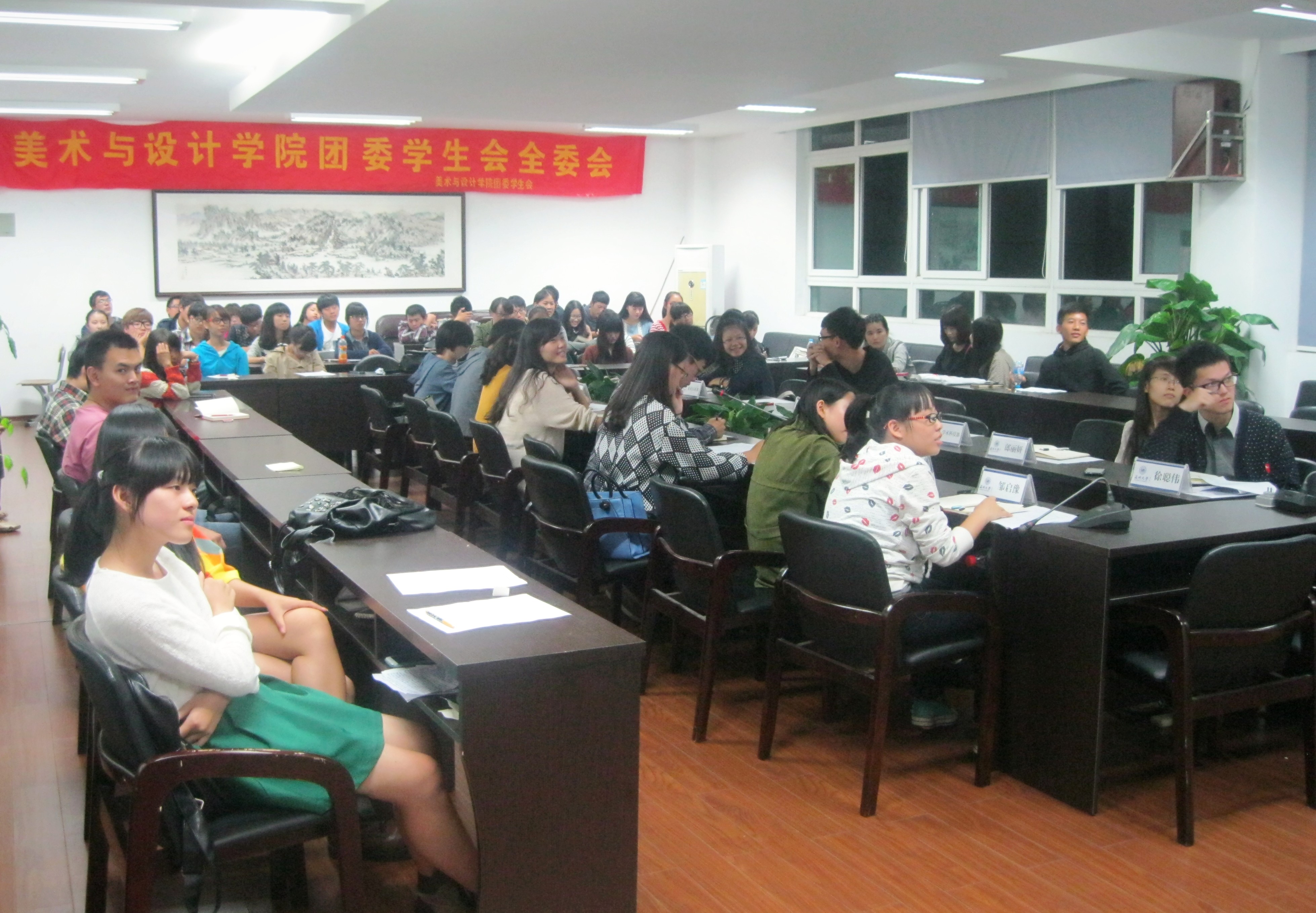 主席团成员各个干事进行点评,其中徐聪伟主席针对某位干事演讲时提到的“累并快乐着”的话语表示赞同,并补充道:“累并不是重点,快乐才是重点。”应珊珊副主席感慨:“美院是个团结的大家庭,有你们这帮人真好。”