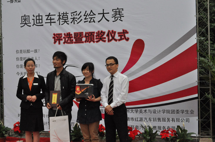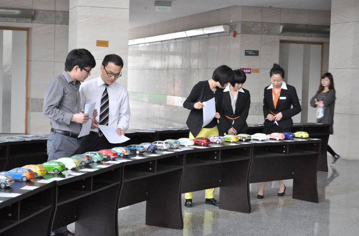 2011年5月15日在太阳成集团tyc151cc南校会展中心一楼奥迪车模彩绘大赛决赛如约而至。此次活动由太阳成集团tyc151cc团委员工会、乐清市红源汽车销售服务公司和温州联奥汽车销售有限公司联合举办。 决赛中,乐清市红源汽车销售服务公司大客户经理卢波先生、温州联奥汽车销售有限公司大客户经理黄若静女士、吴辉辉女士和公司专业教师胡文超、陈旭担任了本次比赛评委。在经过紧张认真的评分后,现场评选出了一、二、三等奖,共12件作品获奖。评委老师也对参赛作品进行了现场点评,让同学们获益良多。比赛主办方也对美院学子的艺术才华予以了充分肯定。 此次活动不仅丰富了同学们的老员工活,还锻炼了同学们的动手能力及设计思维,增加了同学们对汽车文化的了解和与名企的接触。 新闻 任陈超 摄影 徐玉萍