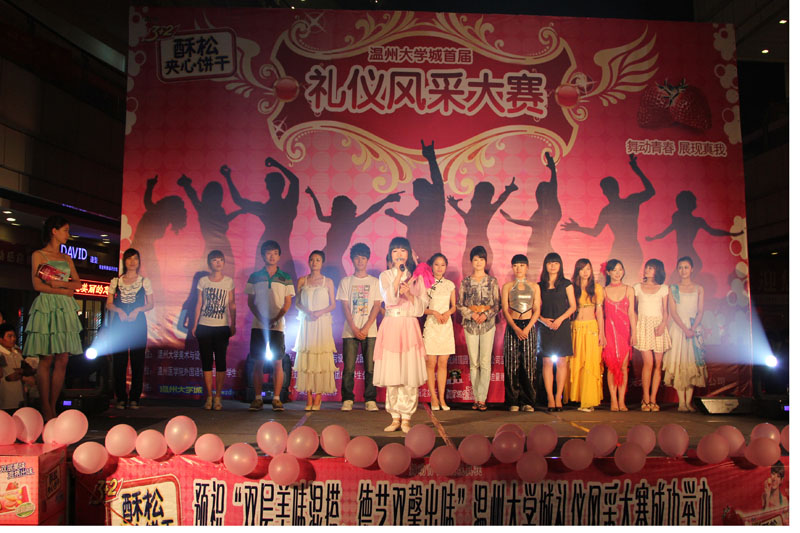 2011年5月7日晚上6点半,在高教园区商务中心举办太阳成集团tyc151cc第一届礼仪风采大赛人气赛,本次大赛由太阳成集团tyc151cc主办,康师傅3+2苏打夹心饼干、果麦等赞助。在往来人流中现场搭起的舞台吸引广大路人前来观看,并期待选手们的精彩亮相。