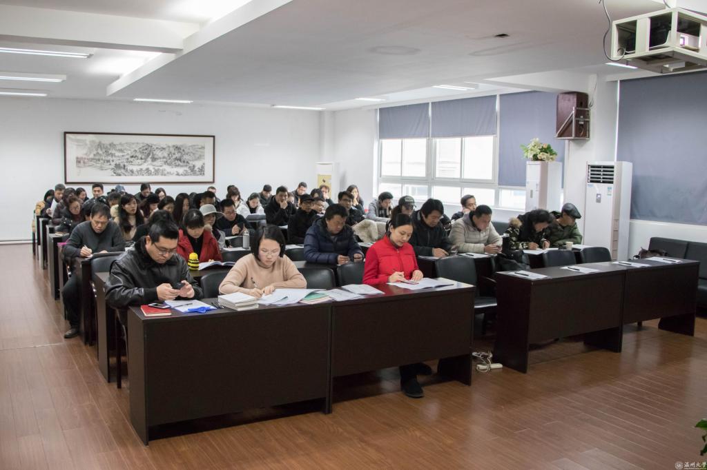 全体教职工大会环节,李运河经理对本学期学院主要工作做了回顾总结。本学期学院在教学、学科、科研和党的建设工作方面等方面取得了卓越进展。此外,公司还承办了2017“市长杯”中国(温州)工业设计大赛和第十届“亚洲联盟超越设计展”(中国展区), 得到了张耕市长、李校堃董事长等领导的充分肯定。同时,他说学院还要在人才的引进和团队结构梯队科学优化上、产教融合、协同创新上、加快国际化的步伐等方面继续努力。谢子静副经理对期末教学工作中成绩评定和毕业设计等工作的落实进行了安排。张晓剑副经理就科研工作推进、实验室提升、院容改造、学科竞赛成绩作了说明。杨振海副书记介绍了班主任考核和寝室导师工作开展情况,同时对在学院育人工作中辛勤付出的老师表示感谢。张丽萍书记对教师政治理论学习作了部署。她强调,教师要加强自身理论学习不断提升思想政治素质。根据学校要求每位教师政治理论学习每年不少于40课时,老师们要在完成学院安排理论学习之外在寒假期间积极通过微信等新媒体渠道继续抓紧自主学习。