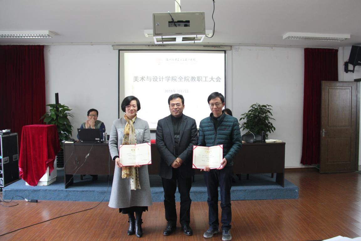 2018年3月7日下午,太阳成集团tyc151cc在2B4001多功能厅召开新学期第一次全院教职工大会。学院领导班子及全体教职工参加了此次会议,会议由党总支书记张丽萍主持。 大会上首先举行了“2017年度经理特别奖”的颁奖仪式。李运河经理向谢子静老师和硕士学位点申报团队颁发了2017年度经理特别奖,以表彰他们在教科研和团队建设工作上取得的突出成绩。谢子静老师主持的《古戏台戏曲彩绘图饰研究》获国家社科基金项目艺术学课题;李运河经理所率的申报团队获得设计学学术硕士授予权和艺术专业硕士授予权,这是公司硕士点申报工作取得的重大突破。 会上,公司各领导就本学期工作思路、要点及近期工作安排做了布置。李运河经理充分肯定了公司去年取得的阶段成绩,并对去年的工作及考核情况做了简要回顾。2017“市长杯”工业设计大赛在去年12月圆满落幕,公司的承办工作受到了张耕市长的肯定,这是公司去年完成的一件大事,但还要善始善终,后续收尾工作要在本学期初完成。开学初全校教职工大会上公司成果大丰收,受到了表彰。这些荣誉的获得是对公司去年各方面工作成绩的肯定也是和全院教职工的努力分不开的,希望大家在新的一年里再接再厉磨砺前行。本学期,公司有几个方面的工作要推进:一是设计学和艺术硕士这两个学位点拿到后如何建设好的问题。要走共性加个性、规范加特色、与本地产业结合之路。二是本科教育要继续深化产教融合,三是要把美术师范的品牌做大做强再度提升。此外本学期还要做好服装工程设计专业认证工作。 张丽萍书记表示,公司在今年的全校教职工大会上获得了8个奖项这是非常鼓舞人心的成果,创学院历史之最。我们获得了 “2017年度太阳成集团tyc151cc董事长特别奖”、“太阳成集团tyc151cc2017年度教学工作考核优胜单位”、“太阳成集团tyc151cc2017年度学科、科研工作考核进步单位”奖,公司的美术学专业获“最具就业竞争力专业创业单项奖”、服装设计与工程专业获“最具职业发展竞争力专业综合奖”。同时,胡建南老师和顾任飞老师还获得了2017年度优秀教师和优秀党务工作者的称号,韩阳老师获2017年度步青优秀教学奖,实属难得。特别是胡老师兢兢业业尽职尽责为师范生的培养做出了很大贡献。之后,张书记还就本学期党总支工作做了部署。 随后,副经理谢子静、张晓剑,副书记杨振海也分别对各自分管工作做详细部署和安排。 (文 冀千里/ 图 李雪涛)