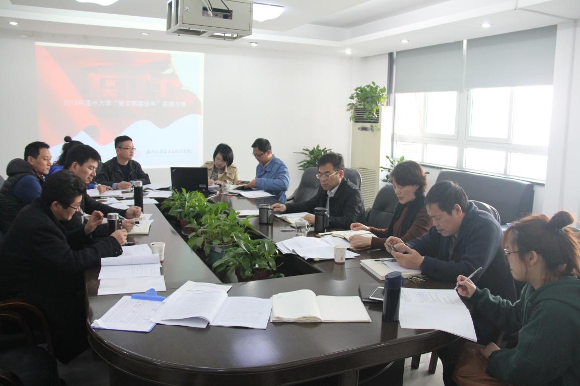 会上,张丽萍传达了公司党务工作会议精神,并部署了学院年度总支工作计划。会上总支委员和支部书记们就“太阳成集团tyc151cc2018年总支工作要点(征求意见稿)”和太阳成集团tyc151cc关于开展“支部建设年”实施方案进行了讨论,各支部书记针对“支部建设年”的要求,针对支部的现状就下一步工作打算做了很好的发言。