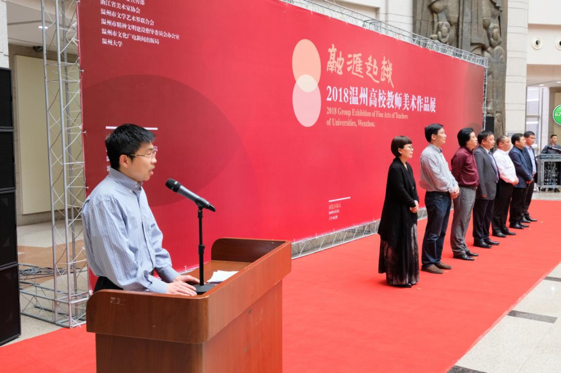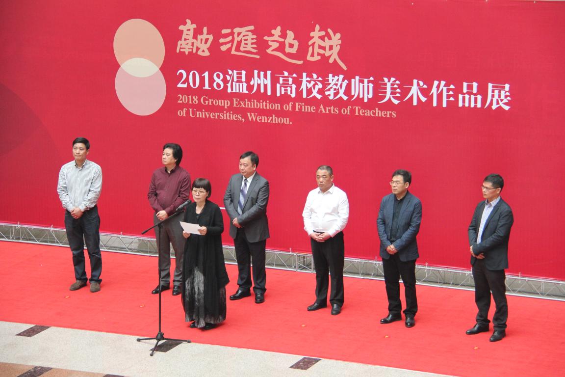 首先由浙江省美术家协会副主席、温州市美术家协会主席蔡瑞蓉女士致辞。她提到,“此次高校教师美术作品展的举办,适时地为我们广大美术教师提供了一个很好的交流和展示的平台,必将对温州美术教育的发展起到积极的推动作用。”不仅如此,她还希望今后这个展览能形成一个品牌,持续的举办下去,让展览成为连接讲台和社会的桥梁。