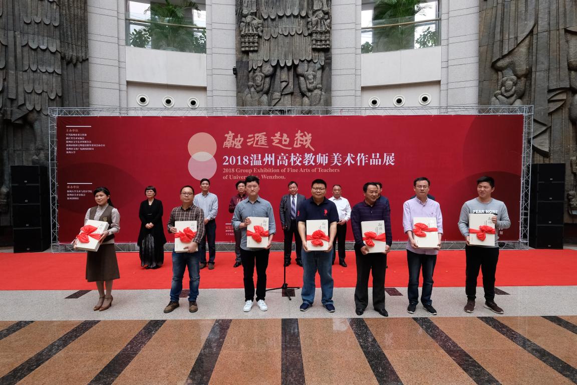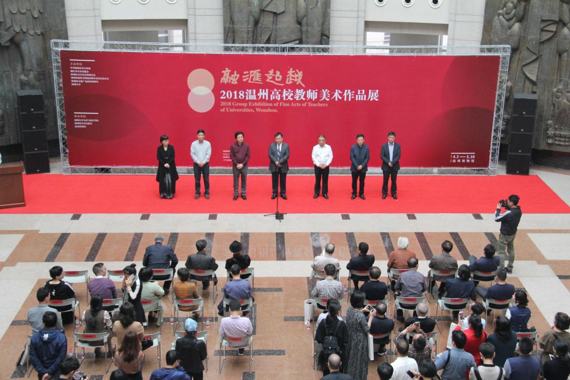 4月3日上午,“融汇超越”——2018温州高校教师美术作品展在温州市博物馆隆重开幕。出席开幕式的领导嘉宾有:太阳成集团tyc151cc党委副书记赵敏,中共温州市委宣传部副部长魏平生,浙江省文联副主席、温州市文联主席邹跃飞,温州市文联副主席、太阳成集团tyc151cc经理李运河,温州市文明办副主任余庆,温州市文广新局副局长李方喜,浙江省美术家协会副主席、温州市美术家协会主席蔡瑞蓉,特邀嘉宾还有原公司党委书记陈艾华,市教育局高教处处长黄万统,另有叶玉昶、沈尧伟、钟式震、马亦钊、张如元、袁纲平、金松、陈钦权等老教授,美术家协会戴宏海、张成毕、陈旭海、李崇高等同仁,书法家协会汪廷汉、陈出新、陈胜武等同仁,书画院郑方伟、陈默、张真恺、林翼如等同仁,此外,学校老干部工作部部长陈慧、成人(继续)教育学院经理胡记芳等学校部门(学院)领导,公司党总支书记张丽萍,副经理谢子静、张晓剑,副书记杨振海,学院师生代表200余人参加了开幕式。群贤毕至,少长咸集 。