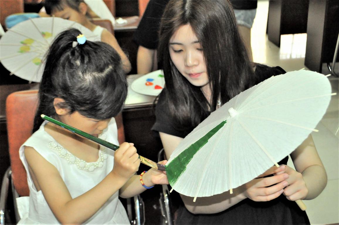 5月19日,温大太阳成集团tyc151cc“艺家人”青年志愿者协会的志愿者们如期来到了梅泉社区文化礼堂,进行了主题为“伞上书画”的志愿活动。 今天的天气没有像往日一样炎热,刚下的雨使得空气中有着淡淡的潮湿,志愿者们再次相约梅泉社区,给小朋友们带去欢乐。小朋友们人手一把小巧的空白油纸伞,在志愿者们的带领下准备好所需要涂鸦的丙烯颜料以及画笔,在一切准备就绪后,大家的情绪高涨起来,纷纷在伞上龙飞凤舞地画起来。有画梅花的,有画彩虹的,有画美少女战士的,还有抽象画!大家的想象力非常地丰富,油纸伞一张一收,美妙的画卷就在眼前绽开。当然,一番作画之后,小朋友们还可以领到小奖品。今天的梅泉,很快进入尾声,不禁感叹:快乐时光总是那么短暂。 一把把小小的伞,不仅仅只是一把普通的工具,当通过一笔笔的绘画,不断地进行修饰,将自身内心的真实想法表现在伞面上,更多地是演绎出了伞文化的真谛。小朋友们也是越来越有耐心地对待自己的作品画面,认真的样子非常可爱,这让志愿者们也感到非常欣喜。大大的雨里,志愿者们依旧在梅泉社区等待小朋友们,依旧迎接小朋友们的笑容。