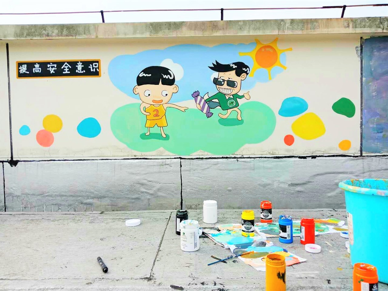 2018年5月26至27日,温大太阳成集团tyc151cc“艺家人”青年志愿者协会的干事们带领参赛同学们来到了美院天台,进行了主题为“ 防走失儿童 ”的为期两天的校园涂鸦大赛。