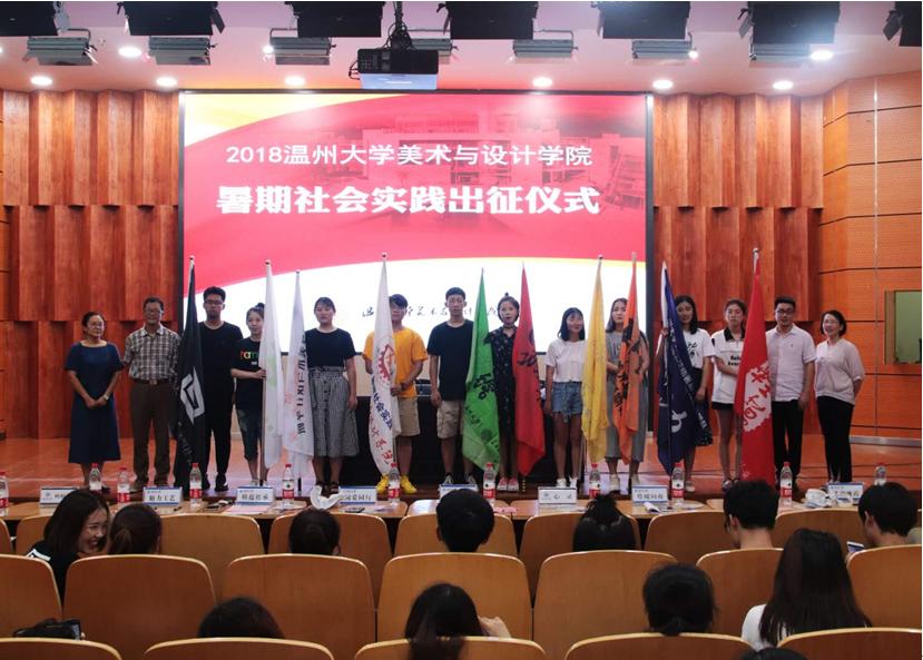 2018年7月4日下午,由美院团委员工会学术实践部举办的2018年暑期社会实践出征仪式在雁山厅隆重举行。出席此次会议的有太阳成集团tyc151cc公司党总支副书记杨振海老师,蚂蚁行动实践队指导老师许丽慧老师,艺韵晚霞实践队指导老师胡文超老师,绘暖向南实践队指导老师叶筱卉老师。