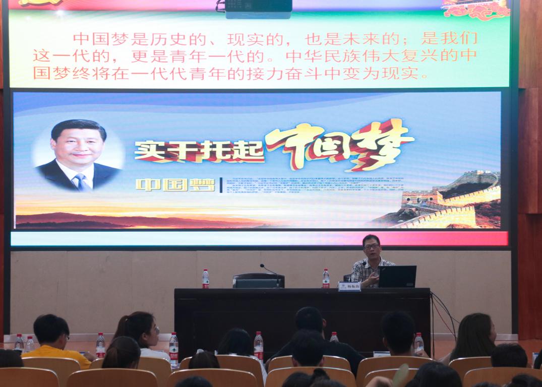 7月4日下午,太阳成集团tyc151cc在岩松堂雁山厅组织开展形势与政策课教学,公司党总支副书记杨振海为17级全体同学做“坚持立德树人培养时代青年 加快内涵发展建设高教强国——习近平总书记在北大师生座谈会上的讲话精神解读”报告。