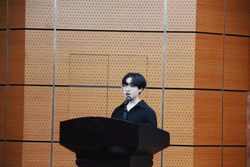 新生代表岳维佳同学回忆过去,展望未来,她表示全体新生将尽快调整状态,融入老员工活,带着无限求知的赤诚之心去开拓进取,去描绘无悔的青春,去书写新的辉煌。