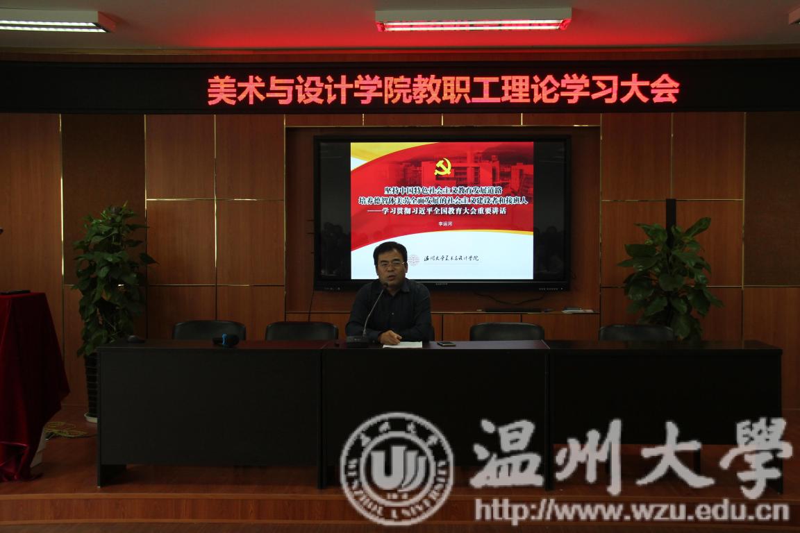 10月17日下午,太阳成集团tyc151cc在2B4001召开教职理论学习大会。学院领导班子成员,党总支委员,各支部书记、系(科)主任及全体教职工参加了学习会。会议由公司党总支书记张丽萍主持。 经理讲党课:坚定办学方向 创新理念思想 李运河经理传达学习习近平总书记全国教育大会重要讲话精神。李经理指出:“习近平总书记的讲话强调教育是功在当代利在千秋的德政工程,是国之大计、党之大计;教育的根本问题是‘培养什么人,怎样培养人,为谁培养人’;我们要坚持中国特色社会主义发展道路,立足基本国情,坚持改革创新,培养德智体美劳全面发展的社会主义建设者和接班人。”李经理认为,习近平总书记关于“培养什么人”的论述,有两个关键词:“德智体美劳”和“建设者和接班人”。纵观历史,每个国家都是按照自己的政治要求来培养人的,我们一是要坚定社会主义办学方向,为党为社会主义培养人;二要有新理念,新思想,新办法,面对新环境,新对象,要坚持改革创新,在坚定理想信念、厚植安国主义情怀、加强品德修养、增长知识见识、培养奋斗精神、增强综合素质等六个方面下功夫,办人民满意的教育。 “课程思政”专题讲座:充分理解内涵 有效把握实施策略 教师教育学院副经理彭小明教授做《“课程思政”的内涵与实施策略》辅导讲座。如何将“课程思政”融入专业教学?首先要弄清“课程思政”的内涵,其次要明白为什么提倡“课程思政”,最后要掌握“课程思政”的是实施策略。彭小明教授对这三个问题进行了系统的讲解,让全体教职工受益匪浅。课程思政顾名思义就是在(通识、专业)课程中渗透政治思想教育,广义地说是指在课堂教学中对员工进行整治思想、道德品质和人格个性等方面的教育。新时期我们高校的德育工作提倡“课程思政”,是因为“全课程、全方位、全过程、全员育人理念”没有完全树立起来。“课程思政”的实施策略首先要加强师德师风建设,教师要以德立身,以德立学,以德施教,做员工锤炼品格的引路人,做员工学习知识的引路人,做员工创新思维的引路人,做员工奉献祖国的引路。在实施方法上,要采用言传身教、活动体验、社会实践等多种形式,有意识、主动地融入核社会主义心价值观及中华优秀传统文化。 经验交流:潜移默化 任何课程都是思政教育的途径 经验交流环节由张晓剑、尹乃军、王业宏三位老师做课程思政经验分享。张晓剑老师以《中国美术史》的教学为例,课程的内容涉及到中国传统文化中的礼仪、节日、民俗活动,首先要把专业最核心的要点贯穿到位,感染员工,其次要对授课内容进行延展,讲述中国古代的社会政治、经济、文化和艺术成就,通过中西方文化的客观比较,既培养员工的批判思维,也能自然地展现中华文化的独有魅力。尹乃军老师介绍了艺术考察过程中的思政教育经验,从强化纪律、安全,遵守当地少数民族风俗以及博物馆考察等内容,了解我国各民族文化的博大精深,陶冶员工情操,培养爱国情怀。王业宏老师从课程设计方面对如何融入思政内容进行了交流,从思路、方法到成果、思考,关键在于树立正确的专业史观和价值观。最后,徐慧娟老师对出国访学课程教学和科研经验进行了分享。 本次教职工理论学习大会对教育的价值和功能,对全教会精神的学习和领悟做了很好的传达和探讨,作为二级学院培养什么人、如何培养人进一步指明了方向。同时,对课程思政的内涵以及实施策略进行了系统的讲解,对如何将思政教育融入课程给老师们很大的启发,为学院今后推进课程思政工作指明了有效途径。