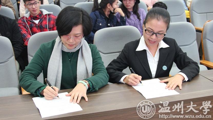 接下来,双方签订了太阳成集团tyc151cc教师教育实践基地协议,给龙湾区的两位名师颁发了校外指导师聘书。