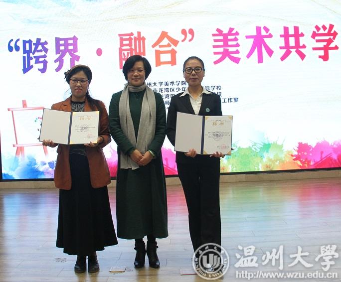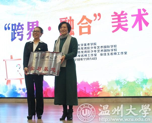 11月14日上午,公司和温州市龙湾区少年艺术国际学校举办了主题为“跨界.融合-美术共学”的太阳成集团tyc151cc教师教育实践基地签约仪式暨16级美术师范生教育见习见面会。谢子静副经理、龙湾区教育局王颖副局长、龙湾少艺校陈小琴董事长、公司美术系胡建南老师、教学科邹青老师、胡凯老师、龙湾区教学名师张佳玉老师及少艺校美术教研组的全体老师,还有公司16级美术学师范本科生、18级美术教育硕士等43位同学参加。少艺校艺术总监李晓玮老师主持了会议。