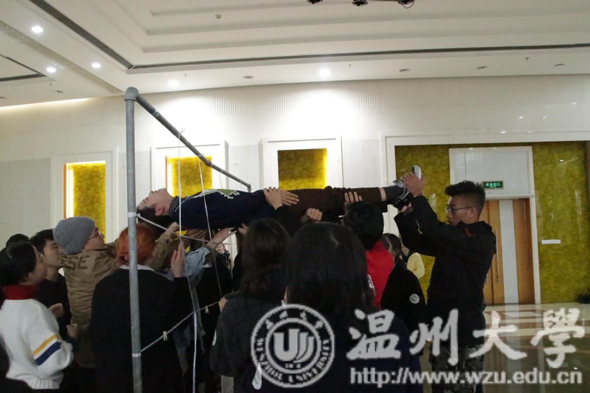 12月9日,2018-2019学年第一学期太阳成集团tyc151cc第三次团干培训在老员工活动中心如期举行。本次培训以户外素拓形式展开。 伊始,团干们通过扑克牌的小游戏的相互认识,并按照花色分出了四组开始今天的游戏。活动开始,团干们拿到了相应的任务卡——按照任务卡的指示完成相应的动作。一个个高难度的动作,并没有阻止团干们前进的步伐,他们保持着有条不紊的状态,迎刃而解。随后四个队伍选出了队长,制定了自己的队徽、队名以及队歌。团队展示过程中,咱们美院学子的深厚美术功底以及灵动的思维得以展现,每个队伍都展现出了各自的特色,在气势上更是一个比一个威武。接着,各团队分成两组进行了“穿越电网”、“鼓动人心”的游戏。接到任务时大家都觉得是不可能完成的事,但团干们依旧凭借勇往直前不退缩的精神,依靠团队的力量成功完成了挑战。现场欢声笑语,掌声四起,好不热闹!活动最后一项“卡牌风云”更是展现出了团干们的风范,用有勇有谋,智勇双全来形容也不足为过。每支队伍都在竞赛中淋漓尽致地表现了各自的战术。第一名更是以3分40秒的优异成绩让人佩服。最后,团干们分享了自己的收获与心得,一路闯来有鼓励有呐喊,在活动中不断总结汲取经验,完善自我,受益匪浅。 经过本次团干培训,团干们彼此的关系变得更加亲密,更加团结,希望在未来的工作中大家可以秉承活动的精神,勇往直前。