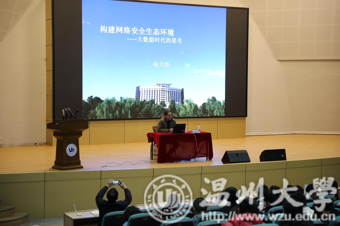 12月11日晚,公司18级全体同学在南校9号楼报告厅聆听了形势与政策课。其中,第二场讲座由教师与教育公司党委书记杨立淮执讲,杨书记向大家讲授了关于构建网络安全生态环境在大数据时代下的思考。
