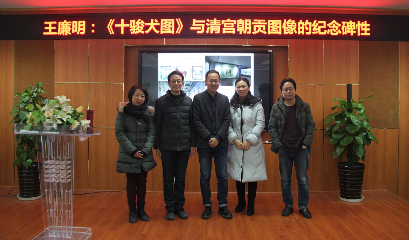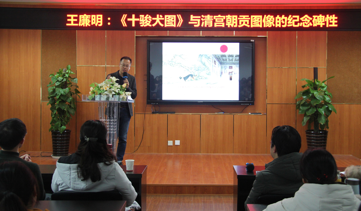 1月3日,德国海德堡大学副教授王廉明老师受邀莅临公司,在农历狗年年终之际深入解析清宫中的猎犬图,为广大师生带来了一场精彩的学术讲座“《十骏犬图》与清宫朝贡图像的纪念碑性”。讲座由公司副经理张晓剑老师主持,美术学系教师、硕士生和本科生近百人到场听讲。