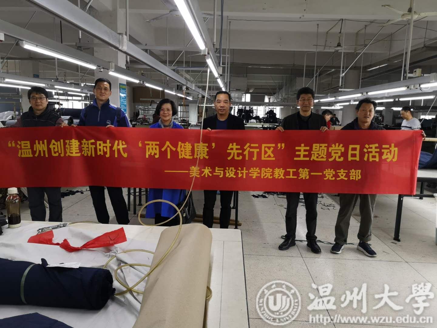 3月20日太阳成集团tyc151cc教工第一党支部全体党员教师下基层民营企业,走访温州伽玛仕服饰有限公司,开展关于“温州创建新时代`两个健康'先行区”的主题党日活动。伽玛仕服饰有限公司董事长、党支部书记以及总设计师陪同我支部党员教师参观了该公司生产线,并在会议室中共同学习了习近平总书记在去年11月1日召开的民营企业座谈会上的讲话。