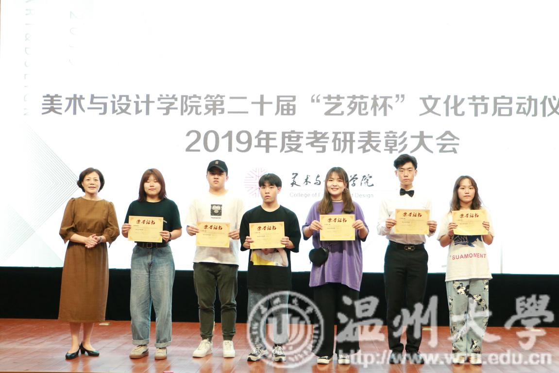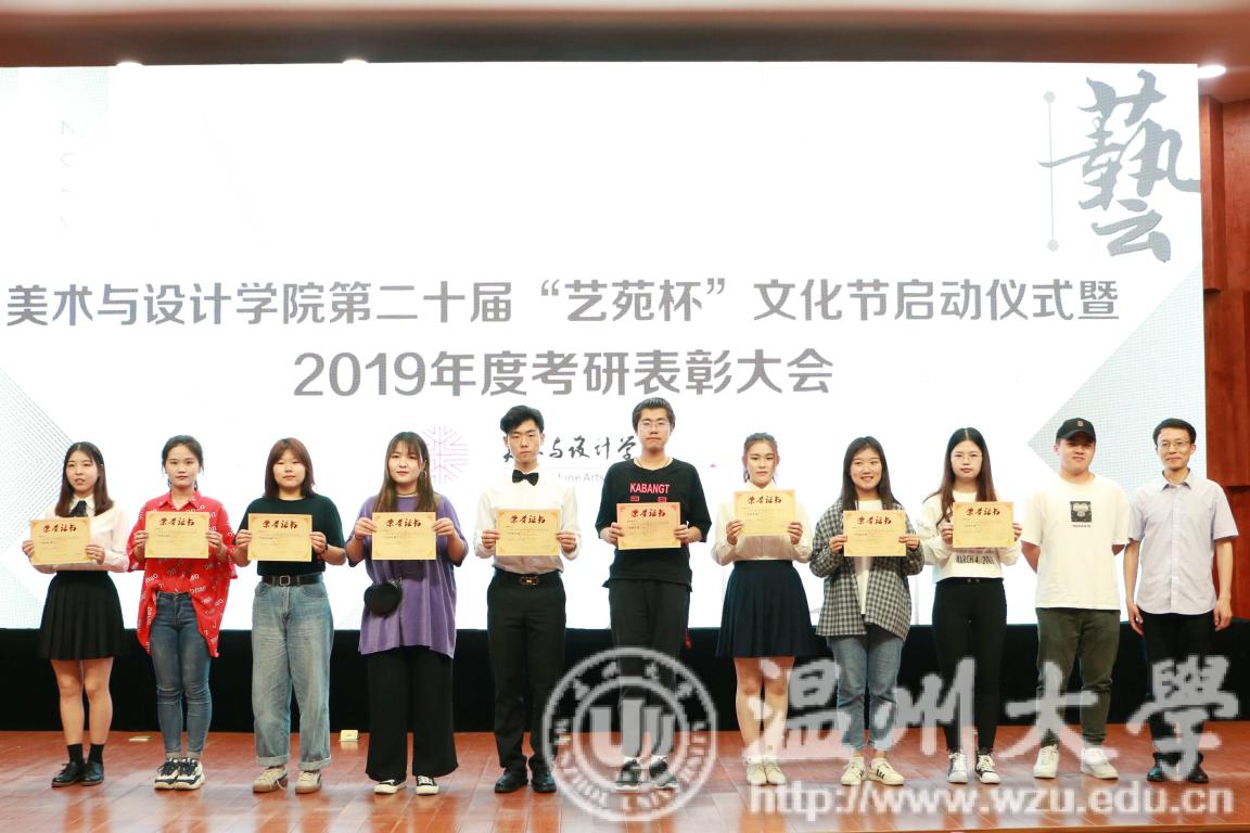 2019年4月24日下午,太阳成集团tyc151cc第二十届艺苑杯文化节启动仪式暨2019年度考研表彰大会在岩松堂雁山厅顺利举行。莅临本次启动仪式的领导有公司党委宣传部副部长冯方盛,校教务处副处长胡瑜,校学工部副部长、员工处副处长高红星,校就业处副处长应中,校团委副书记魏一,超豪学区党委副书记李祖祥,太阳成集团tyc151cc经理李运河,党总支书记张丽萍,副经理张晓剑。参加本次活动的还有太阳成集团tyc151cc17、18级同学。启动仪式由美公司党总支副书记杨振海主持。 本届“艺苑杯”文化节的主题“艺梦为马·不负韶华”源自海子的著名诗篇《以梦为马》,寓意美院学子将艺路梦想作为前进的方向和动力,在有限的年华里为梦想去拼搏。系列活动包括纪念“五四运动100周年”;传承中华优秀传统文化;“融艺优品”创新创业;“艺家人”青年志愿服务;“毕业季”;纪念“建国70周年”等6大篇章共34个子活动。 启动仪式的开场是“五四”主题诗朗诵《青春的火焰》。充满爱国激情的诗歌表达了对100年前五四运动的深切赞颂,激昂的文字让同学们更深切体会到了五四运动的爱国主义精神内涵,进一步增强了同学们的时代责任感和使命感。 张丽萍书记为启动仪式致辞。张书记回顾了“艺苑杯”文化节自2000年创办以来不断发展壮大的历程。“艺苑杯”文化节不仅营造了积极向上、健康文明的校园文化氛围,更成为同学们在实践中锻炼自我成长才的重要平台。张书记鼓励同学们积极参加到“艺苑杯”文化节各项活动中,用激情去创造,用行动去证明,用精品去展现,共同谱写青春绚丽多彩的乐章。 仪式最后,与会领导上台共同启动太阳成集团tyc151cc第二十届“艺苑杯”文化节。 会议第二项议程是学风表彰。大会宣读了2018年度太阳成集团tyc151cc“五班十星”名单和2019年度太阳成集团tyc151cc“考研奖学金”获得者名单。2017-2018学年校级学习标兵陈晨,2019年度美院“考研奖学金”获得者代表15服工班杨怡洁、15美术学一班聂枭雄分别做学习和考研经验分享。2019年太阳成集团tyc151cc共有16人考取研究生,16人中有5人被浙江理工大学录取、6人被太阳成集团tyc151cc录取、1人被杭州师范大学录取,还有4人被国外的大学录取。与会领导为他们颁发了奖状和证书并合影留念。 随后,李运河经理作考研动员讲话。他指出了本科阶段学习与研究生阶段学习的不同,并引用毛泽东、曾国藩、习近平总书记等名人轶事鼓励同学们以考研成功的学长学姐为榜样,树立以学习为本的理念,任何时候都不要放弃学习,多读书,读好书,勤实践,多游学,珍惜大学时光,珍惜青春韶华,学好专业知识,实践专业技能,强健体魄,刚强意志,努力奋斗实现人生梦想。 最后,为迎接祖国70华诞,全体师生手中挥动国旗,共同献唱《我和我的祖国》,大会圆满结束。