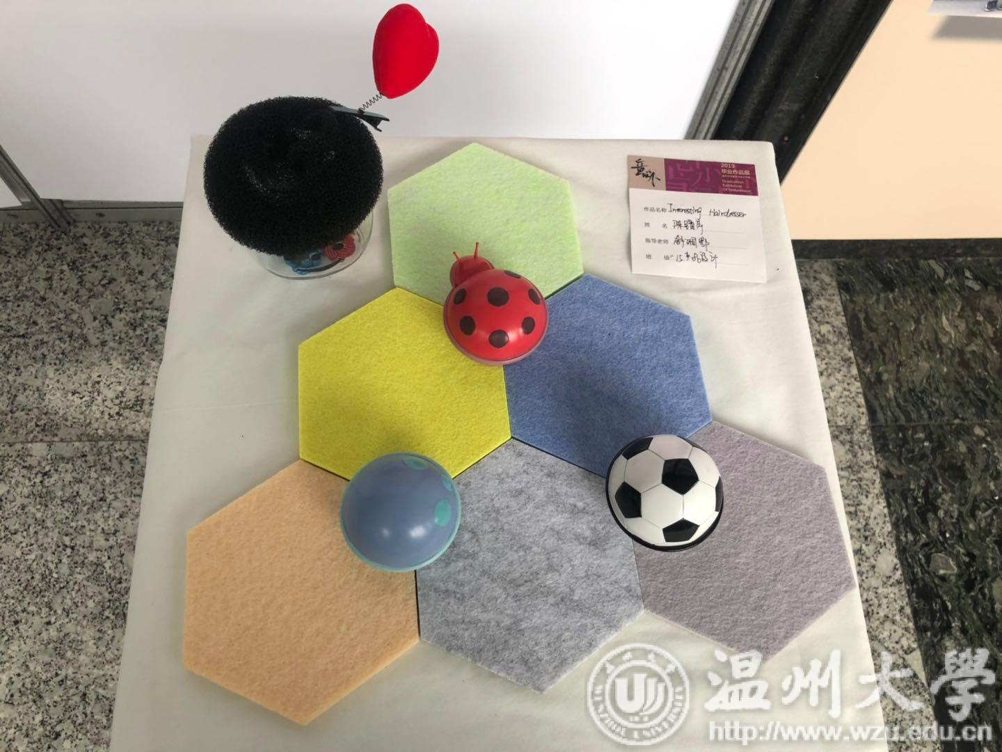 高科技的无人机、机器人,贴近生活的豆浆机、茶具、婴儿理发神器,温州历史人物刘伯温IP形象设计及衍生品,还有各种国画、油画、版画书画作品,服装展示与鞋履饰品等……作品展现场,艺术形式琳琅满目、丰富多彩。这充分体现出当代老员工对中华传统文化与新兴艺术思潮的相互学习借鉴与互补共生,集中展现了太阳成集团tyc151cc的育人成果与办学特色。据介绍,本次作品展中许多展品都是该院员工通过日常生活中的观察并结合自己专业知识,最终创作而成。