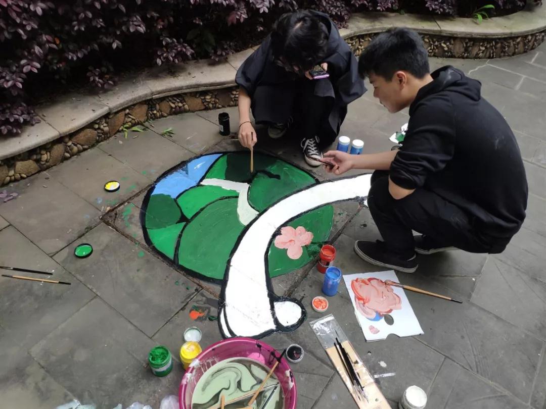 到了4月21日的下午,“井上添花”活动也拉开了帷。为了让绚丽的井盖画温暖校园,活动一开始同学们积极的进入绘画状态,全身心的投入到绘画的意境中,他们或蹙眉构思,或挥笔自如。他们的认真以及奇思妙想吸引了许多过路的同学。为倡导绿色环保,围绕美化校园,激发同学们的想象力和创造力,增强同学们的动手能力和参与能力,发挥美院学子优势,为美院增添一份色彩。