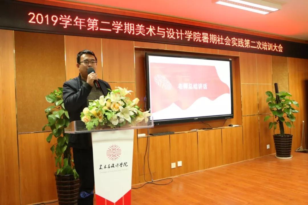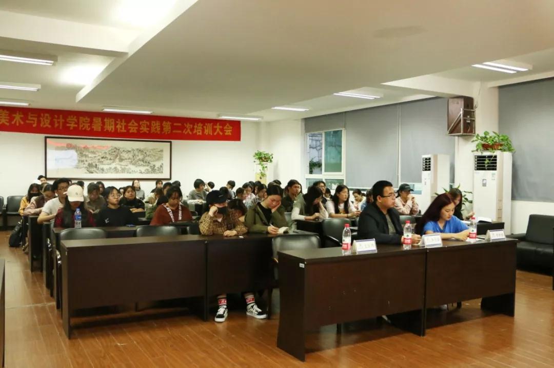 2019年4月28日,美院第二次暑期社会实践培训大会在2B4001举行。参与本次大会的有员工科李雪涛老师、绘暖向南实践队队长王欣雨、蚂蚁行动实践队队长李斯敏、美院团学副主席李颜,还有各个实践队的新任队长和即将要参加暑期社会实践的同学们。