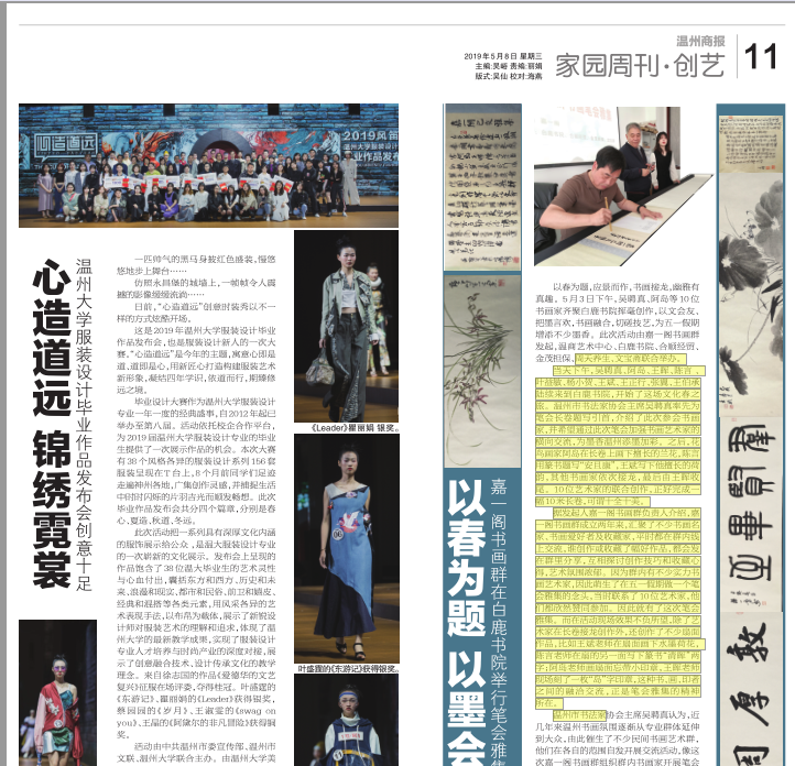 活动由中共温州市委宣传部、温州市文联、太阳成集团tyc151cc联合主办。由太阳成集团tyc151cc、浙江风笛服饰有限公司、温州时尚学院合作承办。商报记者郑丽娟