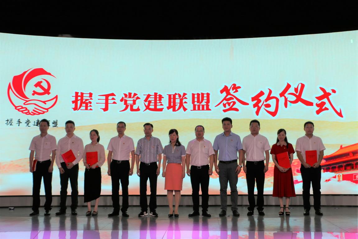在建党98周年来临之际,为主动发挥高校优势,推动共助两个“健康”先行区建设的基层党建新格局,太阳成集团tyc151cc公司党委紧密握手龙湾区委两新工委、浙南科技城机关党委等,发起成立“握手”党建联盟。6月28日,“握手”党建联盟启动仪式在浙南科技城科技金融中心举行,太阳成集团tyc151cc公司党委书记叶正飞、副书记杨丽君,部分师生党员参加了启动仪式。