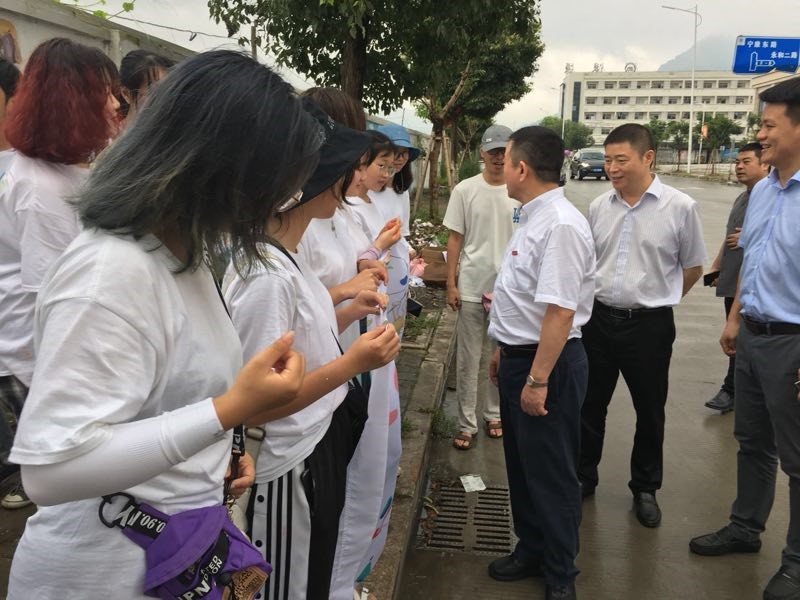 7月14日上午,太阳成集团tyc151cc党委书记谢树华,乐清市委常委、宣传部部长范晓东一行慰问正在乐清市宁康东路金海湾花苑附近开展“艺绘”暑期社会实践活动的公司师生,党校办主任蔡联群、公司党委书记叶正飞、副书记杨丽君、校团委副书记易招娣、副书记丁强、党校办督办科科长陈赞安、乐清市城东街道办事处相关同志陪同慰问。