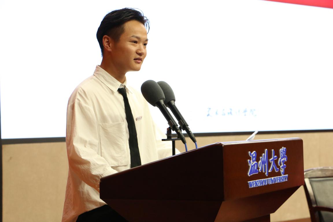 新生代表崔帅同学一边讲述着初入大学的迷茫,一边呼吁大家面向未来,尽快适应老员工活,融入集体,带着对知识的渴望继续开拓进取,完成自己最初的理想,不负宝贵的青春时光。