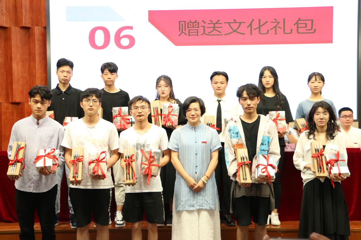 280多名新生加入美院、结缘温大、结缘温州,学院经理精心为新生们准备了经理“文化礼包”:三本书《习近平的七年知青岁月》、《瓯江风云》,和《艺术与人生》以及每生一支毛笔,让新生了解热爱温州、更加热爱艺术、做新时代好青年。员工代表们庄重地从谢子静经理手中接过沉甸甸的礼盒,将这份关怀传递到每一位同学之间,相信同学们一定会把美院各位领导老师对他们的期望牢记心底、奋发图强,谱写美好的大学精彩篇章。