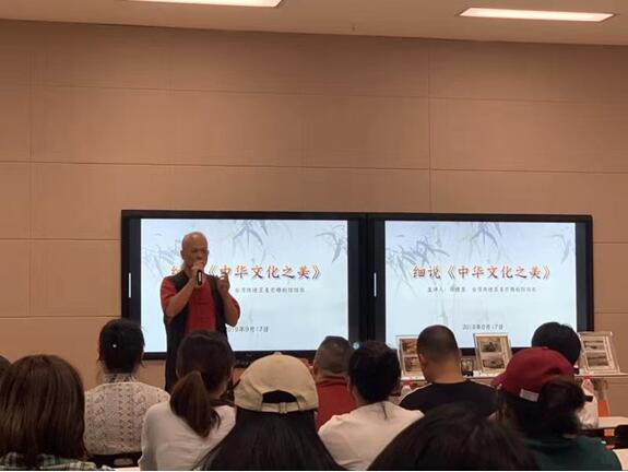 陈逢显在《细说中华文化之美》讲座中围绕台北故宫博物院文物工法薪传展开,阐述中华文化与两岸文化融合发展,将毫芒雕刻的起源、发展、现况做了详细介绍。他说,三千多年来,宫廷文化艺术一脉相承,毫芒雕刻这门宫廷文化流传到台湾,自己从小就接受这些洗礼,走了五十年的时间,造就了今天的传承,希望能以自己的实际行动将中华传统文化之美,与微雕技艺结合,让它在全世界发光发亮,为两岸的文化合作交流做出了重要而富有成效的贡献。陈先生还与老员工们分享了自身的成长和微雕创作经历,并告诫年轻的朋友们艺术创作要沉得下心来,耐得住寂寞,一定要有“工匠精神”。