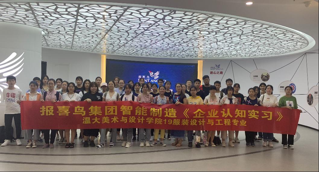 9月19日,由徐慧娟老师带领的19级服装设计与工程(卓工超豪示范班)全体员工来到报喜鸟控股股份有限公司参加企业认知实习。报喜鸟公司给师生们安排了专业讲解员,为师生们详细地讲解了企业的发展历程,陪同参观了报喜鸟凤凰尚品体验店、发展史展览厅、智能制造车间以及服装自动化物流配送中心,员工们目睹了百强服装企业之强,也体会到一个企业之强,强在魂魄、人本和技术。