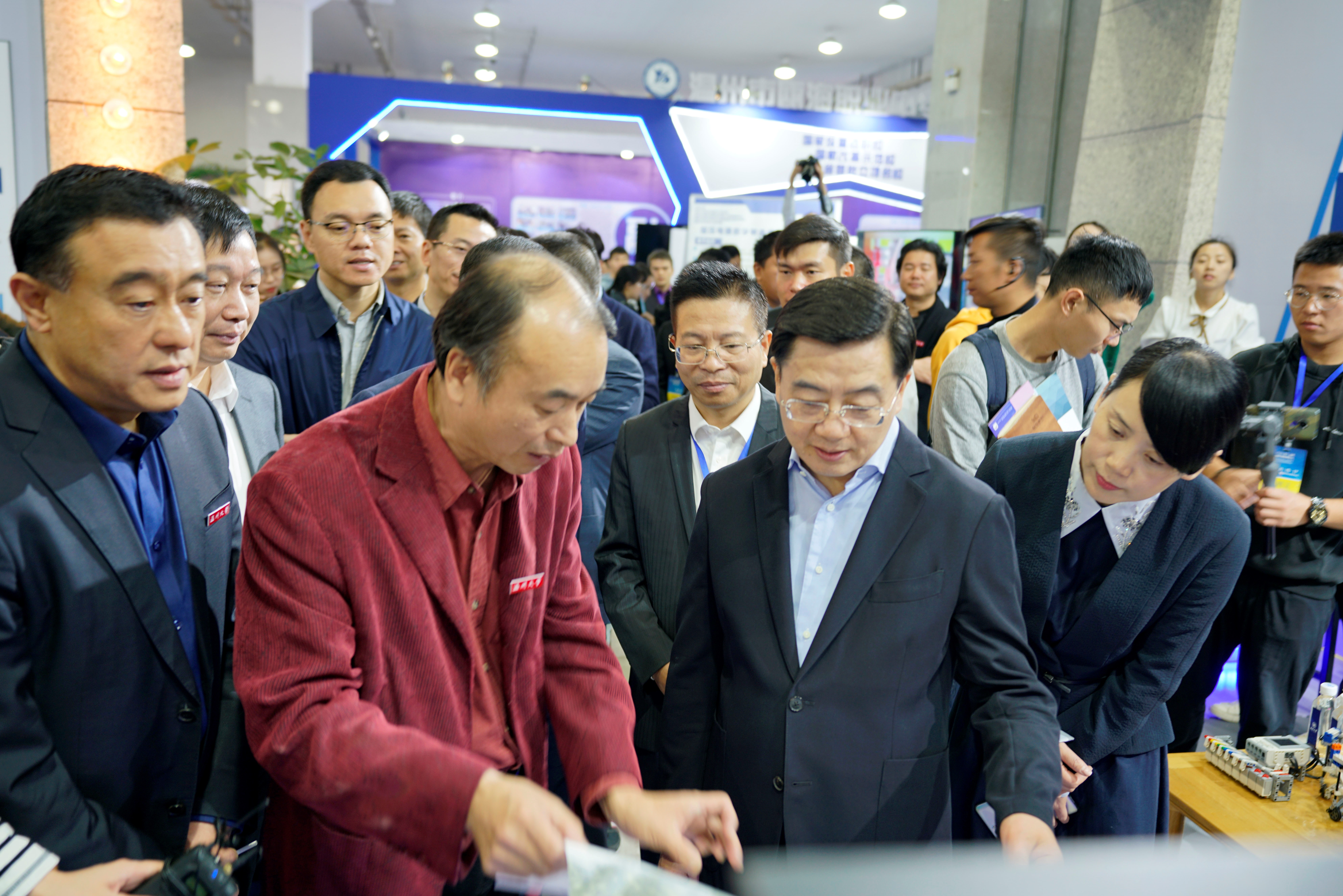 VR环境交互漫游、红点·映筑环境规划设计、三维脚型扫描仪也吸引了市领导、公司领导以及市民的关注。