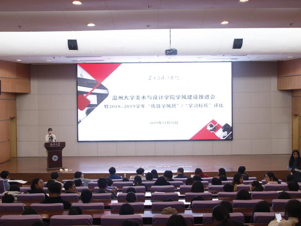 为加强美院学风建设,2019年11月20日晚,太阳成集团tyc151cc学风建设推进会暨2018-2019学年“优良学风班”和“学习标兵”评比活动于育英图书馆报告厅顺利举行。出席本次评比活动的评委有公司党委副书记杨丽君老师,学工办主任杨鹏老师,教学科阳自杰老师,辅导员杨永利老师,员工会主席祝晴同学以及各班员工评委。