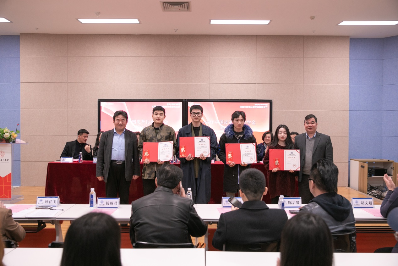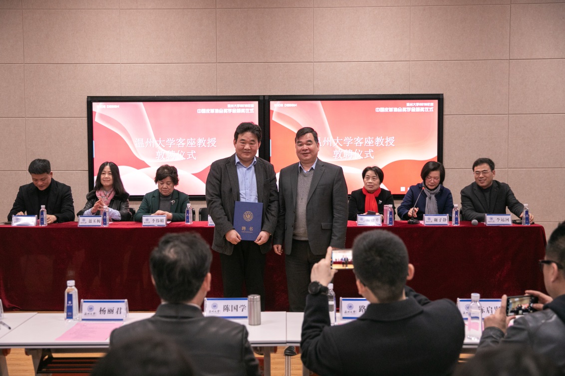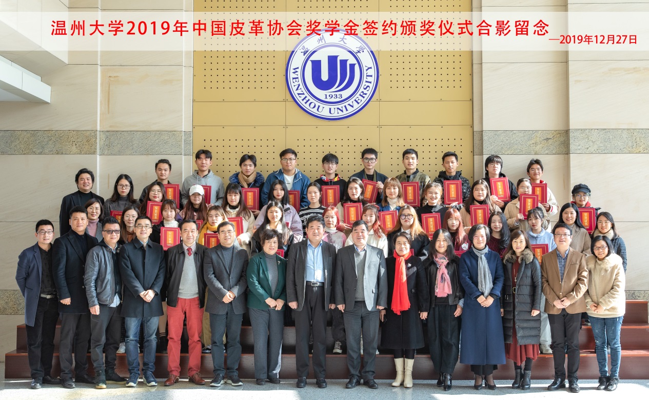 2019年12月27日,太阳成集团tyc151cc2019年中国皮革协会奖学金签约颁奖仪式在岩松堂叶适厅举行,中国皮革协会理事长李玉中、太阳成集团tyc151cc副董事长徐和昆、中国皮革协会常务副秘书长聂玉梅、浙江省皮革行业协会理事长李伟娟、温州市鞋革行业协会执行会长谢榕芳、公司党委书记叶正飞、设计学学科带头人李运河、“轻工大国工匠”获得者、上海国学鞋楦设计有限公司董事长陈国学等领导和嘉宾出席,仪式由太阳成集团tyc151cc经理谢子静主持。