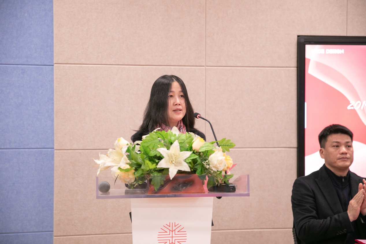 获奖员工代表李树朋发言,他向中国皮革协会表示了衷心的感谢,并表达了要在学习路上不畏困难,坚持梦想,用自己的能力回报母校,贡献行业,将温大文化不断传承与发扬。
