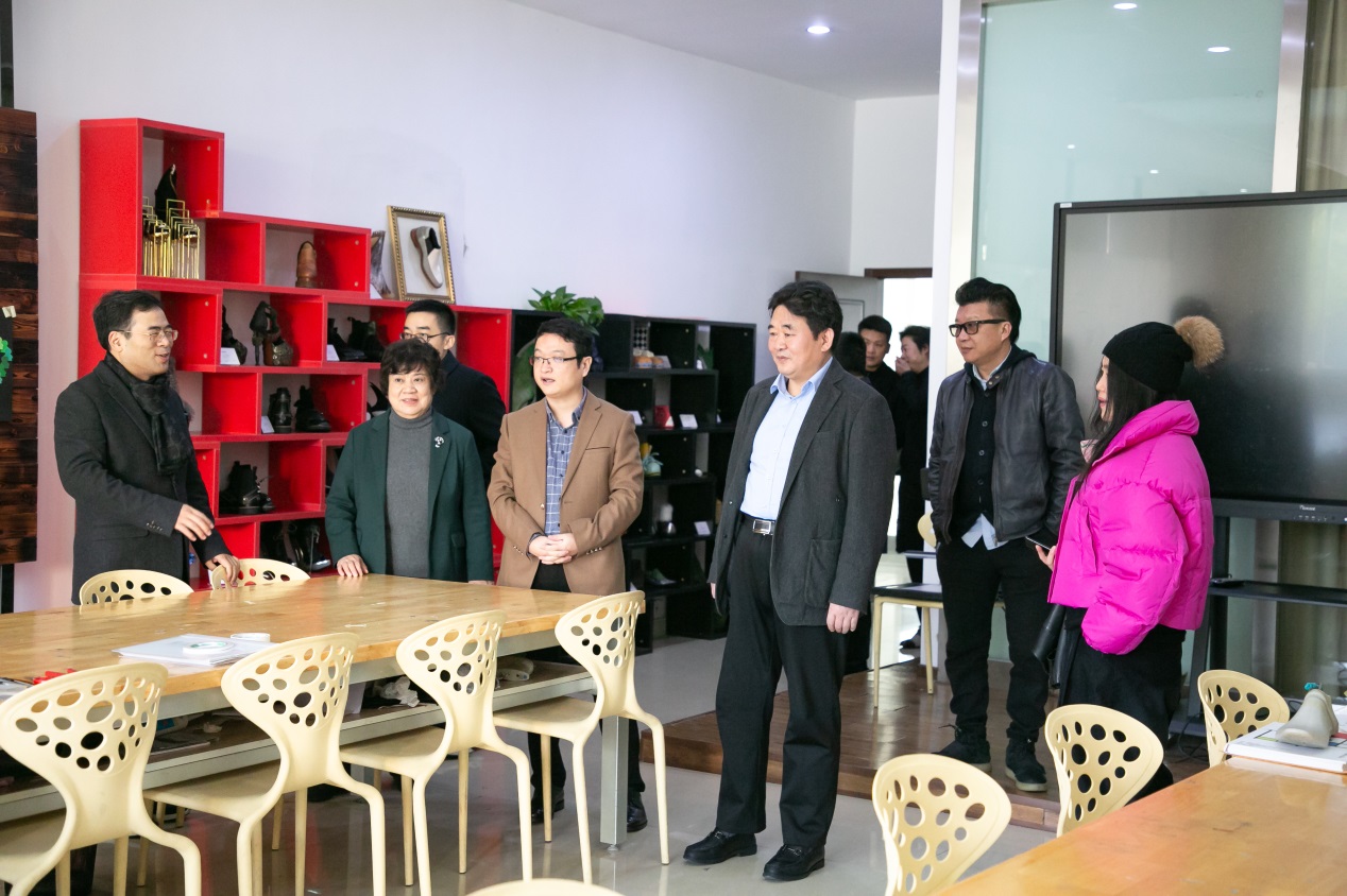 仪式开始前,李玉中理事长一行参观了鞋履与饰品设计专业设计工作室和实训中心,详细了解了鞋履专业与温州本土鞋企、科研院所开展深度联动,并将真实设计项目引进课堂,开展项目教学的情况,对公司高度重视产教融合、设计创作,为地方经济文化发展做出的积极努力和重要贡献表示赞赏。