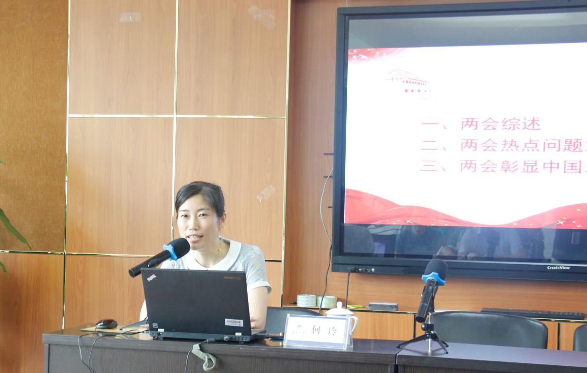 何玲博士围绕两会综述、两会热点问题解读、两会彰显中国之治三个方面向我们全面深刻地介绍了两会的基本由来、热点问题以及产生的影响等。何玲博士指出,此次全国“两会”是在打赢脱贫攻坚和全面建成小康决胜之年,在疫情防控阻击战取得重大战略成功、统筹推进疫情防控和经济社会发展的特殊时期召开的十分重要的会议,会议具有务实简朴、民主开放的特点,并重点解读了疫情防控常态化下谋发展、“六稳”“六保”背景下的经济发展目标、坚决打赢脱贫攻坚战、立法工作任务繁重、审议通过民法典草案,通过《全国人民代表大会关于建立健全香港特别行政区维护国家安全的法律制度和执行机制的决定》等热点问题。何玲博士强调,特殊时期两会的召开审议通过了一系列工作报告及有关觉得决议,成果丰硕,意义重大。会议展示着党和人民奋斗到底的决心、迎接挑战的信心、凝聚力砥砺奋进的强大力量,更彰显了伟大的中国之治。