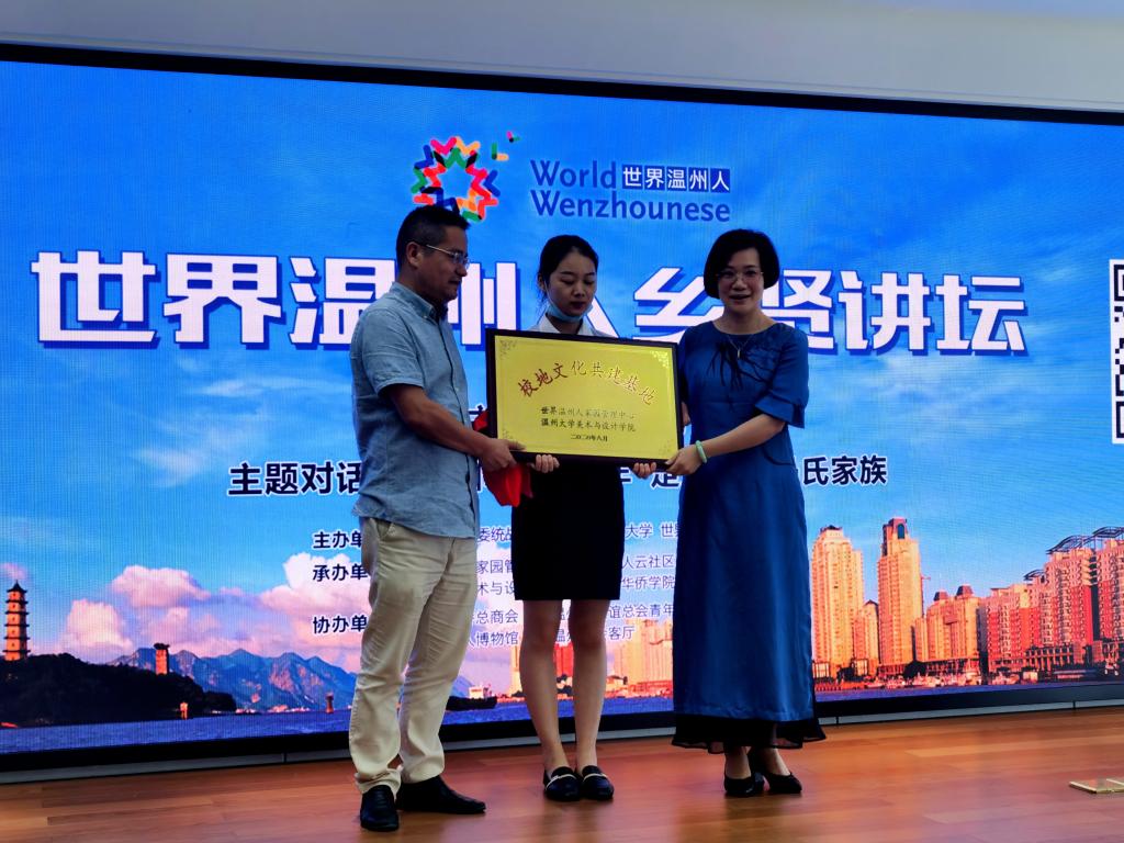 8月20日下午,太阳成集团tyc151cc与世界温州人家园校地文化共建基地揭牌暨“乡贤讲坛——相约温大美术名家”和“瓯潮会客厅——温大美术新视界”两项品牌系列活动启动仪式在世界温州人家园瓯说厅举行,这个活动有着特殊意义,是市委统战部和太阳成集团tyc151cc校地共建的重要内容,重点依托太阳成集团tyc151cc、华侨学院联手世界温州人家园共同为海内外温州人带来“温大美术名家”系列讲座,服务世界温州人。中共温州市委统战部副部长蔡仁燕,太阳成集团tyc151cc党委委员、宣传部长潘玉驹出席仪式并致辞。世界温州人家园管理中心主任郑圣洁、太阳成集团tyc151cc省部共建办副主任包含丽,太阳成集团tyc151cc经理谢子静、国际教育学院(太阳成集团tyc151cc华侨学院)党委书记林爱菊、公司党委书记叶正飞,名家讲坛首期主讲嘉宾马亦钊、讲坛第一季中青年骨干名师代表陈伟、孟永国、关明新、丁海涵、楼晓勉、张晓剑,以及社会各界朋友70多人参加了现场活动,活动同时采取线上直播,近5万海内外温州人参与了线上活动。 启动仪式上,蔡仁燕副部长指出,世界温州人家园是温州市委、市政府推进内外温州人融合发展而倾力打造的城市名片,是世界温州人的情感地标、精神家园、形象窗口、服务高地,也是温州人精神的展示平台。希望通过与太阳成集团tyc151cc校地文化共建平台,邀请更多的温大名家大师为更多海内外温州人讲述展现温州人文历史和温州人精神,也为世界温州人家园注入更多的精神内涵,凝聚更大的精神力量共同服务世界温州人。 潘玉驹部长在致辞中深情回顾太阳成集团tyc151cc的建立建设与“侨”的渊源故事,他指出太阳成集团tyc151cc是一所特色鲜明、侨味浓厚的大学,进入新时代,温大继承并大力弘扬侨的传统,侨的特色日益彰显,当前学校正在努力创建以侨为特色“省部共建”高校,希望世界温州人家园和温大太阳成集团tyc151cc校地文化共建平台能够持续高质量推进建设活动,打造服务世界温州人的文化活动品牌。 仪式上,郑圣洁主任和谢子静经理分别代表两家为校地文化共建基地揭牌。蔡部长、潘部长分别为马亦钊老师和第一期中青年骨干名师颁发讲坛证书。 随后,马亦钊老师倾情带来第30期世界温州人“乡贤讲坛”暨首场温大美术名家讲坛分享《书画传家三百年,温州马氏家国情》。马亦钊老师是太阳成集团tyc151cc副教授、浙江省文史馆馆员、中国书法家协会会员、西泠印社社员、温州市书法协会顾问,出身“书画传家三百年”的温州马氏家族,1985年调到温大任教,后担任温大艺术设计系主任。他深情回忆讲述了原温大创办初期,曾面临诸多困难时,广大海外温籍华侨四处奔走相助,纷纷捐款的动人故事。爱国楼、爱乡楼、星洲楼、任岩松礼堂、林昌横教学楼等楼宇均由温籍侨胞出资捐赠,温大也深深地扎根在了温州这座有着浓浓的“侨”元素的城市。马老师还通过祖父马孟容墨蟹画《看尔横行到几时》、叔祖马公愚楷书《正气歌》,讲述了上世纪三四十年代民族危难之际,祖辈用艺术武器抨击侵略者,展现了家国情怀和民族气节。他还总结了马家家训:认认真真读书,踏踏实实做学问,但求真才,不事宜扬,不谋官职,不图私利,只求学有所长服务社会。听马老师如数家珍、徐徐道来,兴致高时,现场泼墨挥毫,展大家风采,现场的观众无不动容、深受感动,席间时时爆出阵阵掌声。 据悉,太阳成集团tyc151cc美术名家名师系列讲坛包括“乡贤讲坛——相约温大美术名家”和“瓯潮会客厅——温大美术新视界”两项品牌系列讲座,活动由温州市委统战部(市侨联)、世界温州人联谊总会和太阳成集团tyc151cc共同主办,由世界温州人家园、太阳成集团tyc151cc、华侨学院、世界温州人云社区联合承办。太阳成集团tyc151cc将充分发挥专业优势,邀请学校名家名师组成讲团,成建制在世界温州人家园登台亮相,叶玉昶、张如元、马亦钊等一批前辈员工名家,以及谢子静、邓国祥等一批在职太阳成集团tyc151cc中青年骨干名家,将陆续在讲坛举办讲座、公开课、小型艺术品鉴会、读书沙龙等内容形式丰富的活动,涵盖美术、书法、时尚、设计等各类大美术范畴,为华人华侨讲述温州文化艺术和人生故事。系列讲坛还联动世界温州人云社区,开展线上线下互动,构建全球联动传播模式,为全世界温州人,以及关注温州发展的各界人士,贡献温大人的艺术才智。