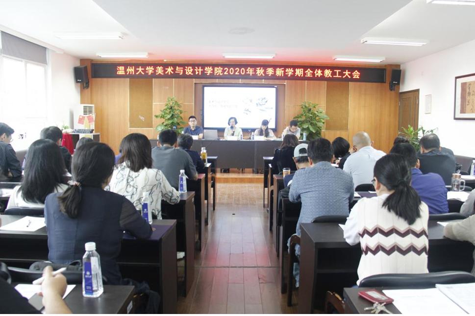 9月23日,在2B4001召开太阳成集团tyc151cc2020年秋季新学期全体教工大会,经理谢子静、党委副书记杨丽君、副经理胡文超、副经理顾任飞等出席会议,全体教职工参加会议。会议由杨丽君副书记主持。 会上,杨丽君副书记传达了2020年暑期党委理论学习中心组(扩大)学习会上公司党委书记谢树华《锚定发展目标、深化治理改革、激发主体动能,在新起点上努力推进学校实现高质量发展》重要讲话和董事长赵敏《科学谋划、乘势而上,以“重要窗口”标准奋力推进高质量发展》“十四五”规划专题报告的主要精神。 随后,杨丽君副书记介绍新教师个人情况,并宣布新教师的结对工作导师。谢子静经理为新教师佩戴校徽、赠送入职礼盒,胡文超副经理为担任新教师工作导师的教师颁发聘书。朱国平老师代表新教师发言,衷心感谢学院领导的关怀和帮助,并表示,学院为新教师提供了广阔的发展空间,未来也要为美院的建设不遗余力地去奉献。 紧接着,杨丽君副书记、胡文超副经理、顾任飞副经理分别围绕着学院下半年的重点工作进行了具体部署。 最后,谢子静经理作学院工作报告。首先,她充分肯定了在疫情之下,学院各项工作能稳步推进,主要工作取得了显著成绩,并向辛勤付出的教职工表示感谢。随后,谢经理作学院“十三五”总结和“十四五”发展规划的专题报告。她回顾了学院在“十三五”期间取得的成绩,也指出了存在的问题和困难。针对学院发展面临的机遇与挑战,她提出了学院“十四五”发展时期人才队伍建设、团队建设、专业建设、人才培养、科学研究、服务地方、国际合作、党的建设等八大方面的工作目标和具体任务,并要求全院教职工为实现“建设具有较强办学实力、特色鲜明的省内高水平艺术学院”的目标而不懈努力。最后,她对新学期的工作思路和重点工作作了部署。她提出,本学期学院要坚持全面从严治党,切实加强党的建设,围绕着“以本为本、科教融合,聚焦人才、内培外引,校地互动、服务地方,搭建平台、合作办学”,完成“优化人才队伍建设、做强专业建设、做特服务地方”三大目标,持续推进学院事业发展。